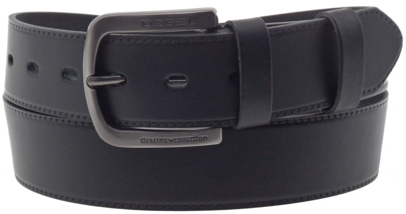 Trendy černý 40mm široký pánský kožený opasek má originální sponu a decentní prošití v okraji. Tento pánský kožený opasek jistě dokonale doladí každý pánský outfit.