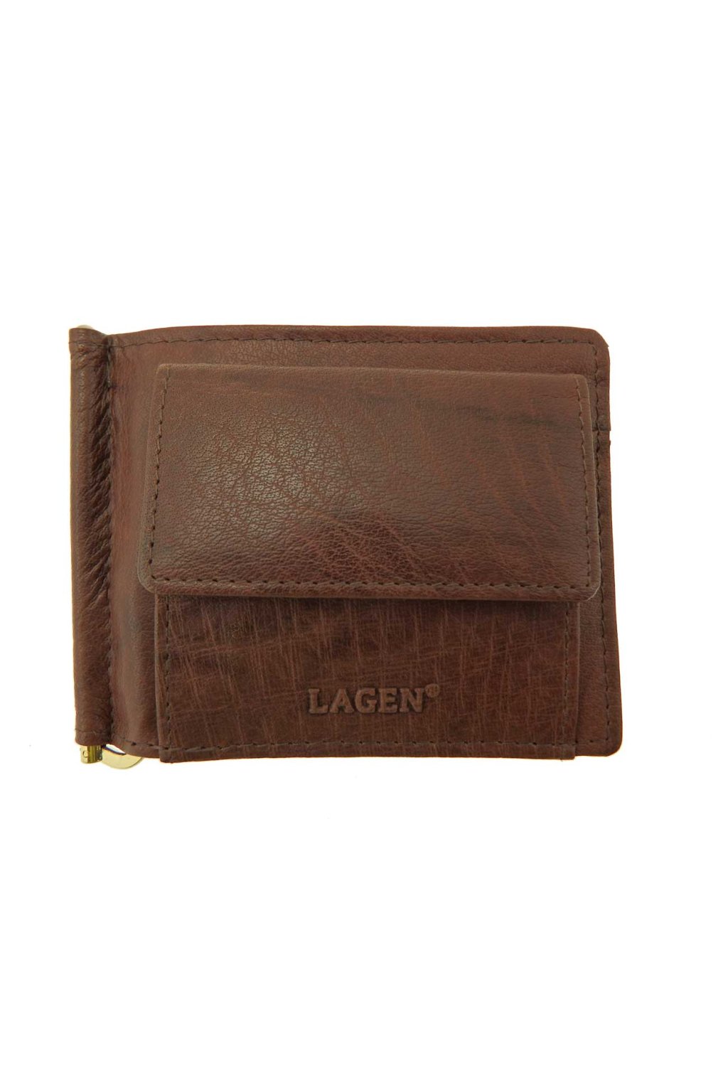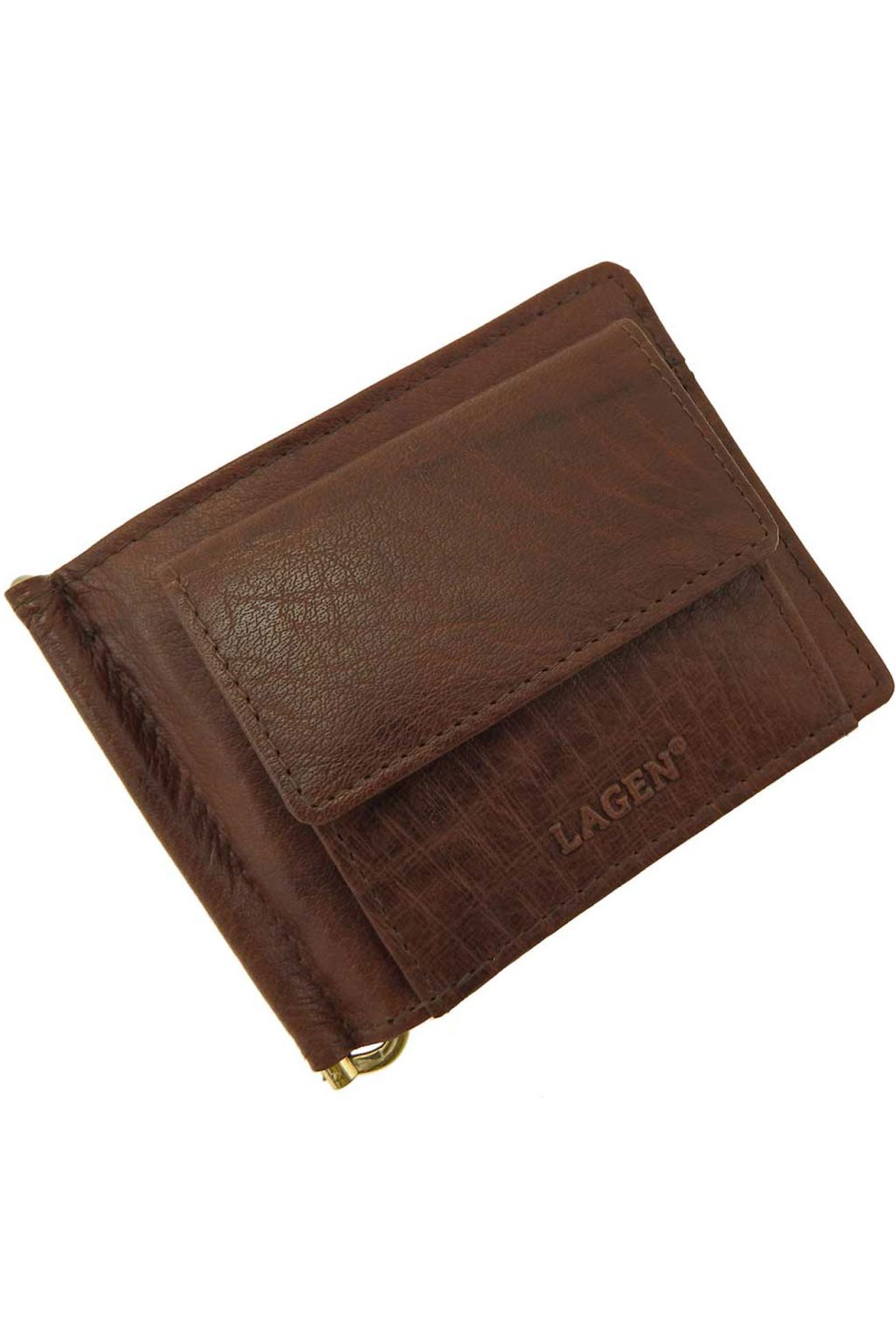 Luxusní pánská kožená dolarovka z kolekce firmy LAGEN v elegantní hnědé barvě, což umocňuje její trendy vzhled. Dolarovka má z boční strany velký prostor na drobné mince uzavíratelný zápinkou. Vnitřní část pánské dolarovky tvoří pérko na bankovky, kapsičky na doklady a organizér na 5 ks platebních a klubových karet.