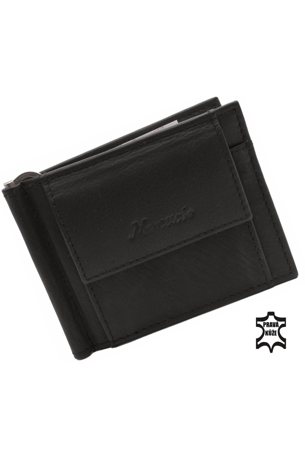 Pánská kožená dolarovka z kolekce firmy MERCUCIO v elegantní černé barvě, což umocňuje její trendy vzhled. Dolarovka má z boční strany velký prostor na drobné mince uzavíratelný zápinkou. Vnitřní část pánské dolarovky tvoří pérko na bankovky, kapsičky na doklady a organizér na 5 ks platebních a klubových karet.
