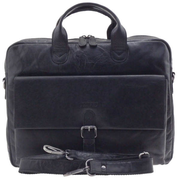 Pánská taška celokožená na notebook od Nizozemské značky JUSTIFIED v elegantní barvě se dvěma úchyty k přenášení tašky v ruce a dostatečně dlouhým popruhem přes rameno, je většího formátu, rozdělena na samostatnou zipem uzavíratelnou komorou, do které lze pohodlně umístit Vaše dokumenty A4, notebook 15.6" a do kapsy na přední části také doklady, peněženku, mobil, vizitky, propisky a jiné věci denní potřeby. Velkou výhodou pánské kožené business tašky je její zadní kapsička na zip, která umožní po otevření i spodní zipové části, umístit business tašku na trolej cestovního zavazadla.