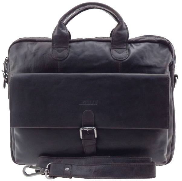 Pánská taška celokožená na notebook od Nizozemské značky JUSTIFIED v elegantní barvě se dvěma úchyty k přenášení tašky v ruce a dostatečně dlouhým popruhem přes rameno, je většího formátu, rozdělena na samostatnou zipem uzavíratelnou komorou, do které lze pohodlně umístit Vaše dokumenty A4, notebook 15.6" a do kapsy na přední části také doklady, peněženku, mobil, vizitky, propisky a jiné věci denní potřeby. Velkou výhodou pánské kožené business tašky je její zadní kapsička na zip, která umožní po otevření i spodní zipové části, umístit business tašku na trolej cestovního zavazadla.