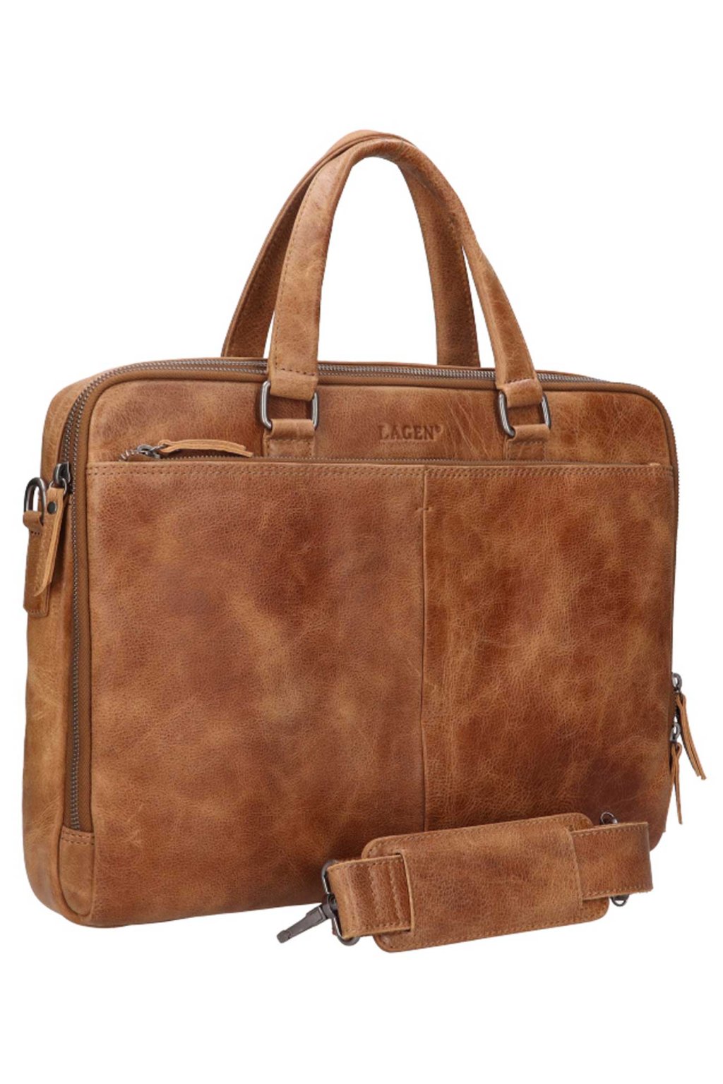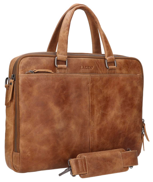 Pánská taška celokožená na notebook od české značky LAGEN v elegantní barvě se dvěma úchyty k přenášení tašky v ruce a dostatečně dlouhým popruhem přes rameno, je většího formátu, rozdělena na samostatnou zipem uzavíratelnou komorou, do které lze pohodlně umístit Vaše dokumenty A4, notebook 15.6" a do kapsy na přední části také doklady, peněženku, mobil, vizitky, propisky a jiné věci denní potřeby. Další prostorné kapsy na zip najdete jak na přední, tak na zadní straně tašky. Zadní část je navíc doplněna o praktický popruh pro snadné uchycení k cestovnímu kufru.
