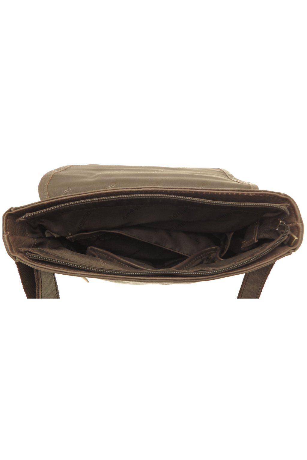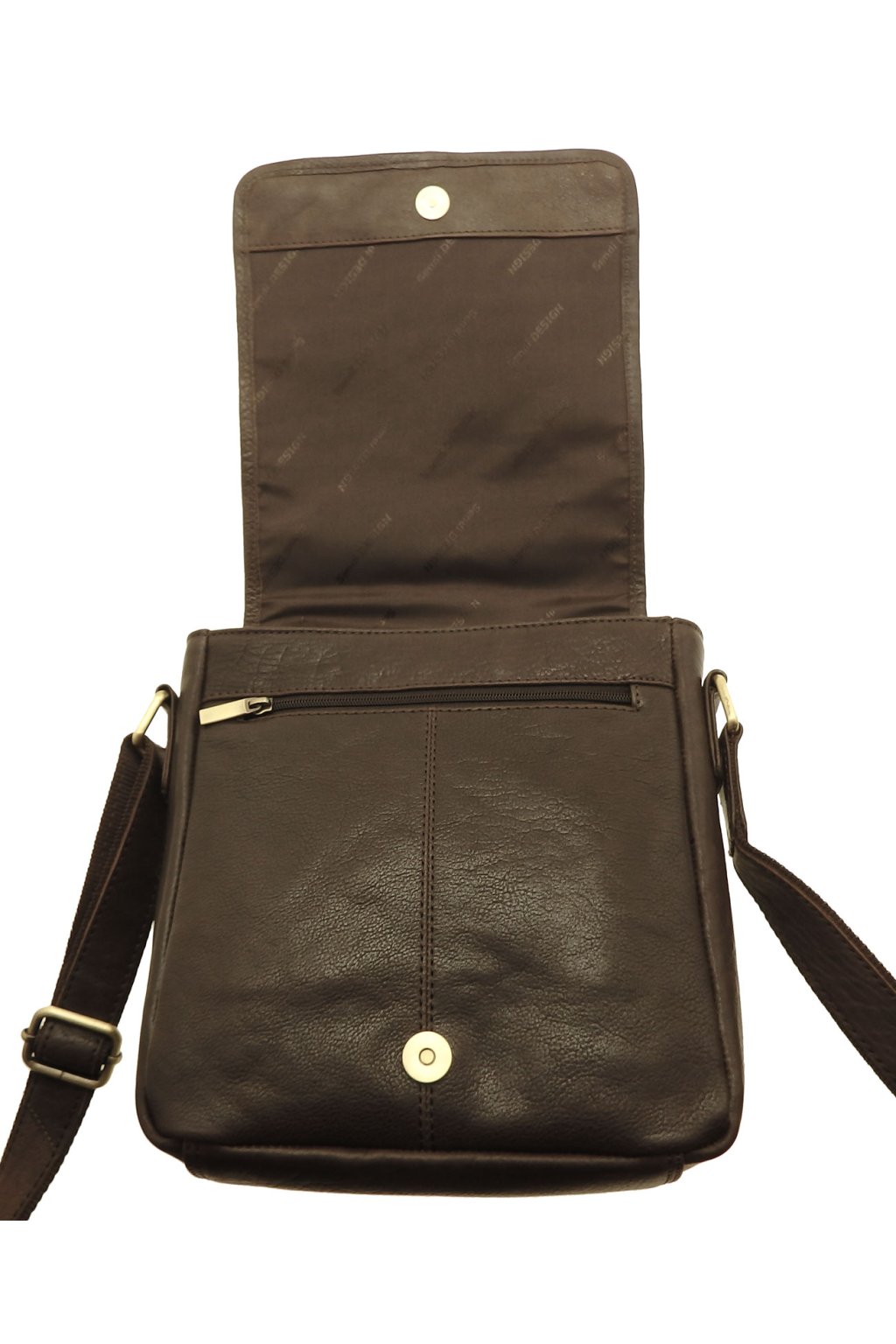 Elegantní pánská kožená taška přes rameno z kolekce značky SENDI DESIGN v hnědé barvě z kvalitní hovězí kůže s jednou velkou hlavní komorou uzavíratelnou zipem a délkou nastavitelným popruhem k nošení přes rameno i křížem přes tělo. Vnitřní část pánské tašky přes rameno tvoří dostatečně velká komora s kapsičku na doklady uzavíratelnou na zip a s kapsičku na mobil. Na přední i zadní části tašky přes rameno jsou kapsičky také uzavíratelné zipem. Přes přední díl této pánské tašky je stylová kožená klopa, která zde navíc plní i funkci bezpečnostní.