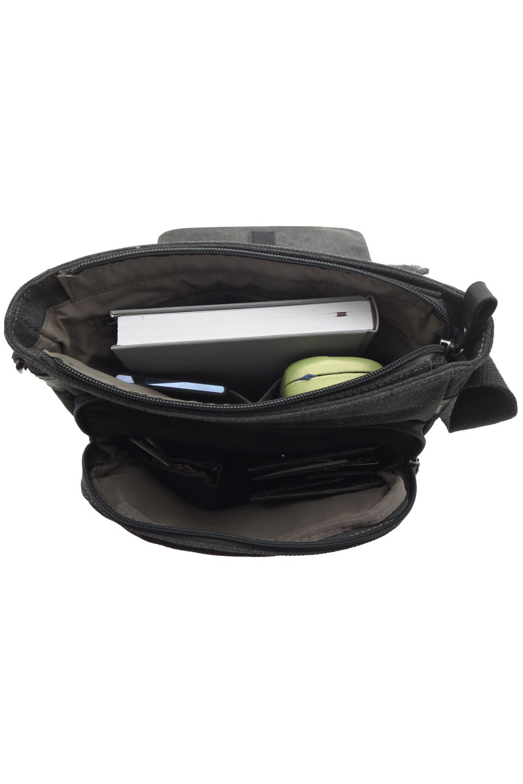 - celá pánská taška přes rameno se celá v horní části uzavírá zipem také toto je velmi podstatné z hlediska ochrany proti vykradení