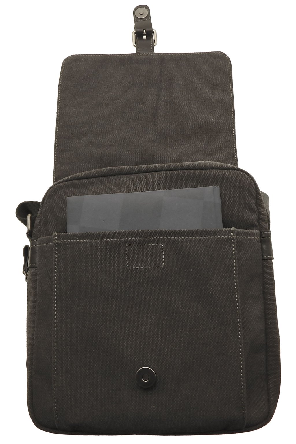 Sportovní pánská malá taška přes rameno menší Francouzské značky FAGOLA vyrobená z oděru-odolné textilie ,,Canvas,, s kapsou na předním dílu a nastavitelným popruhem k nošení přes rameno i ležérně křížem přes tělo. Vnitřní část pánské tašky tvoří dostatečně velká kapsa na iPad 10", diář A5, na peněženku, klíče a jiné drobnosti denní potřeby, vnitřní kapsička na doklady uzavíratelná na zip a kapsička na mobil. Na zadní části je kapsička uzavíratelná na zip.