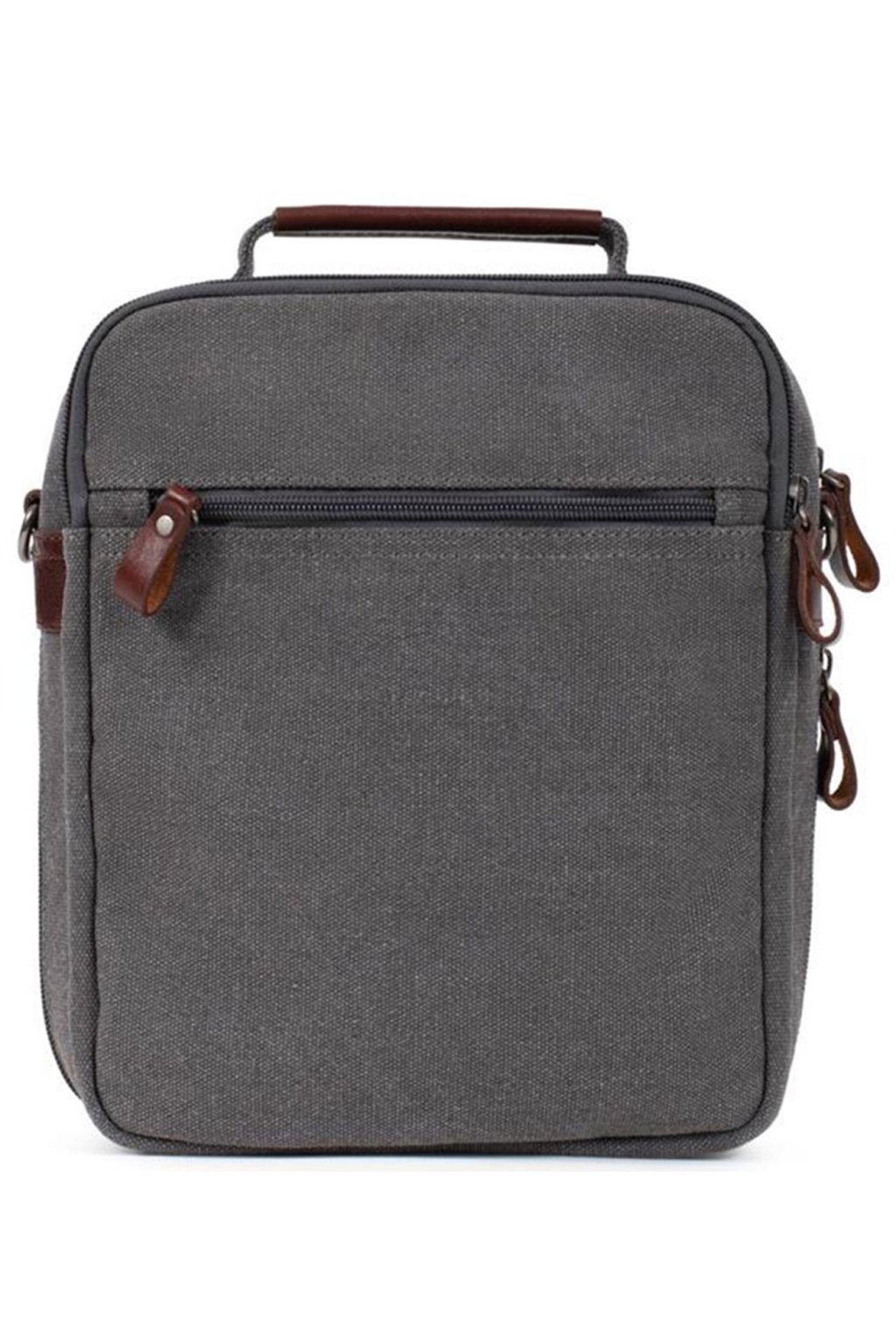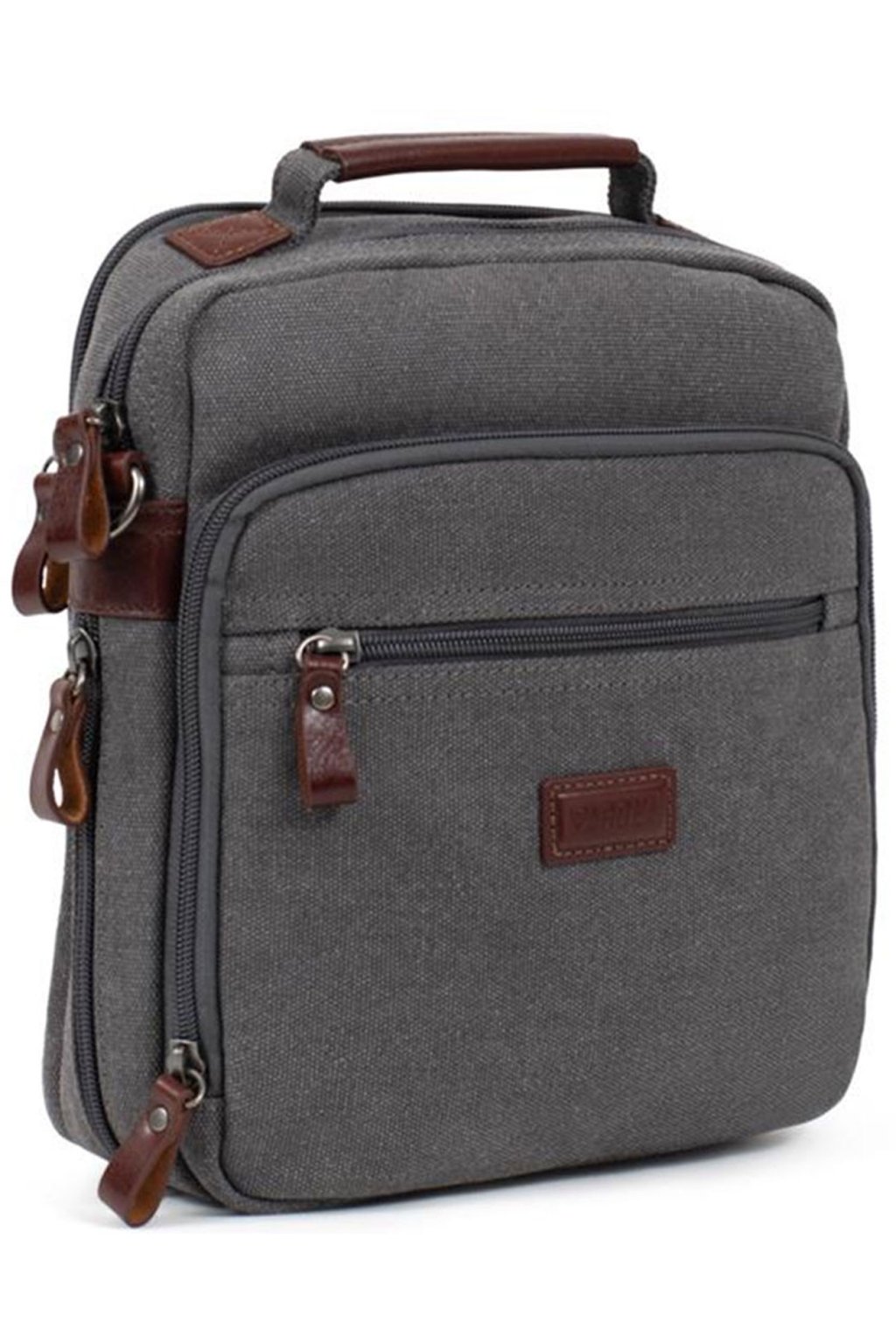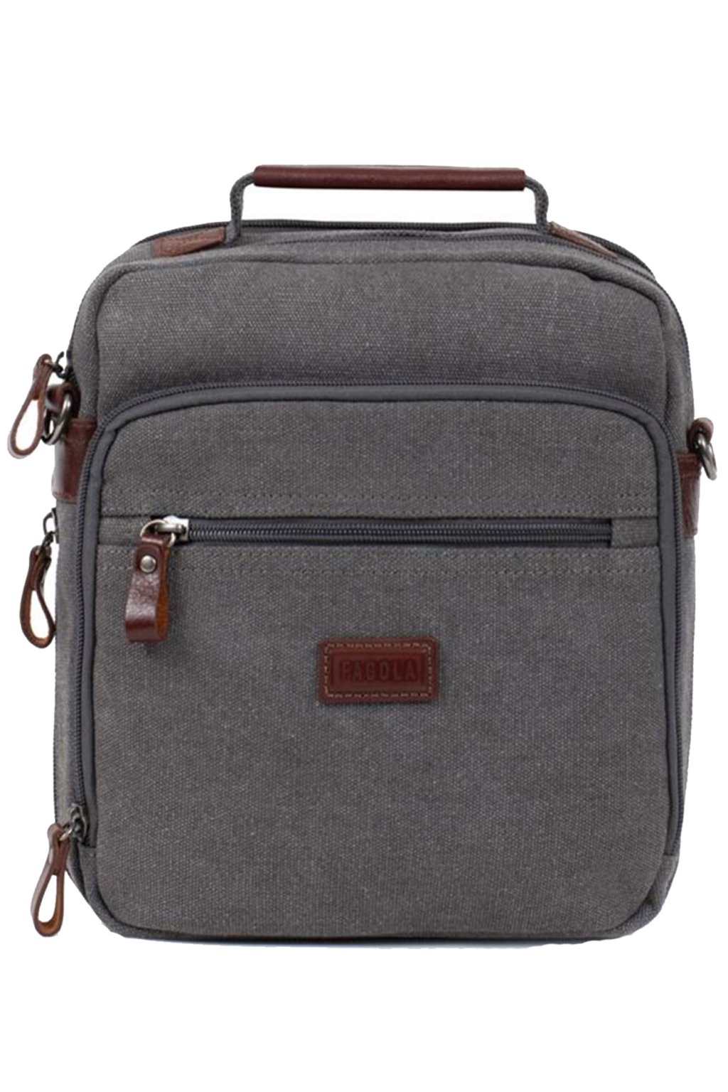 Sportovní pánská taška přes rameno menší Francouzské značky FAGOLA vyrobená z oděru-odolné textilie ,,Canvas,, s kapsou na předním dílu a nastavitelným popruhem k nošení přes rameno i ležérně křížem přes tělo. Taška je opravdu praktická a nabídne dvě samostatné hlavní kapsy uzavíratelné zipem.Vnitřní část pánské tašky tvoří dostatečně velká kapsa na iPad 10", diář A5, na peněženku, klíče a jiné drobnosti denní potřeby, vnitřní kapsička na doklady uzavíratelná na zip a kapsička na mobil. Na přední i zadní části je kapsička uzavíratelná na zip.