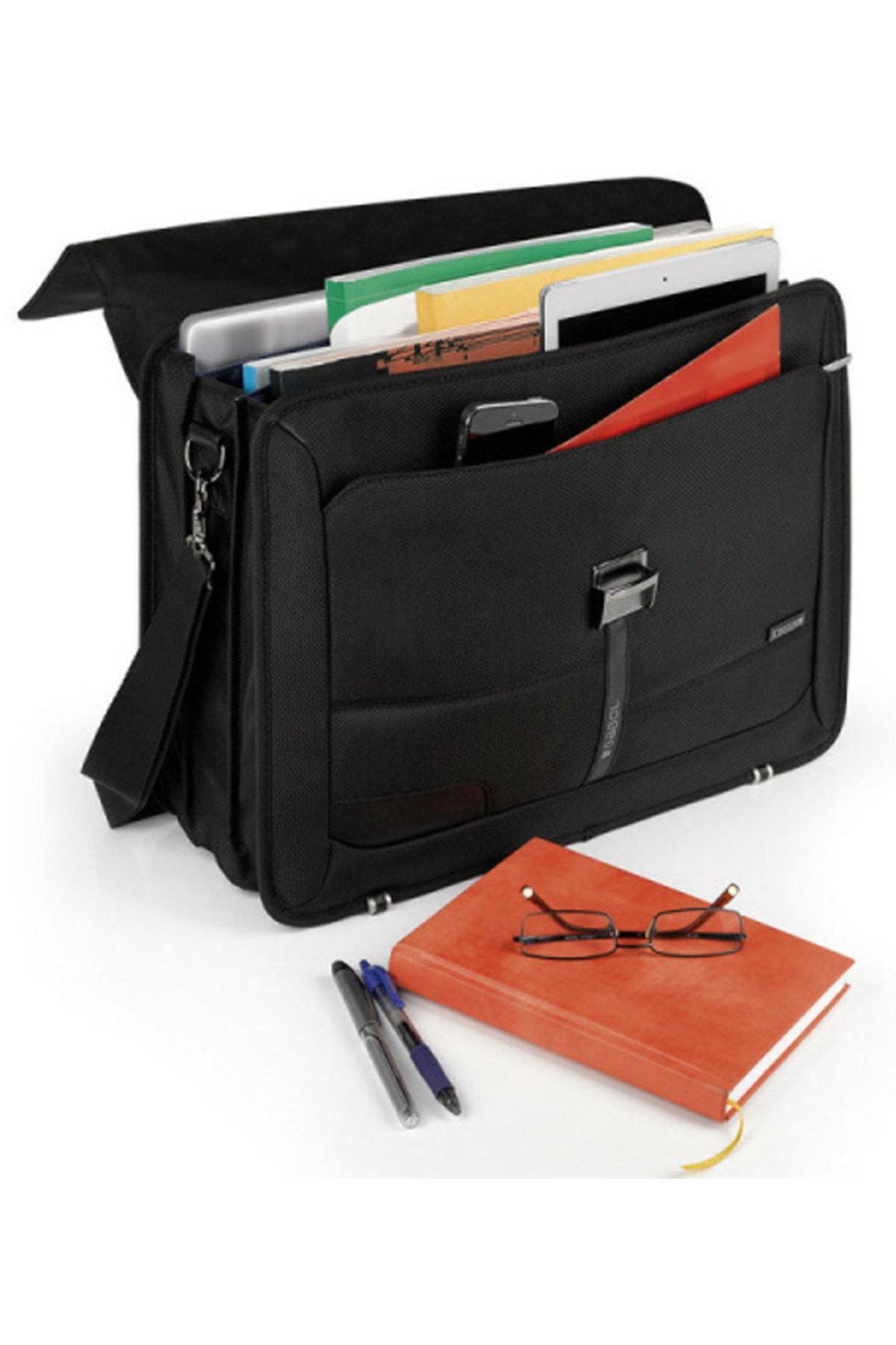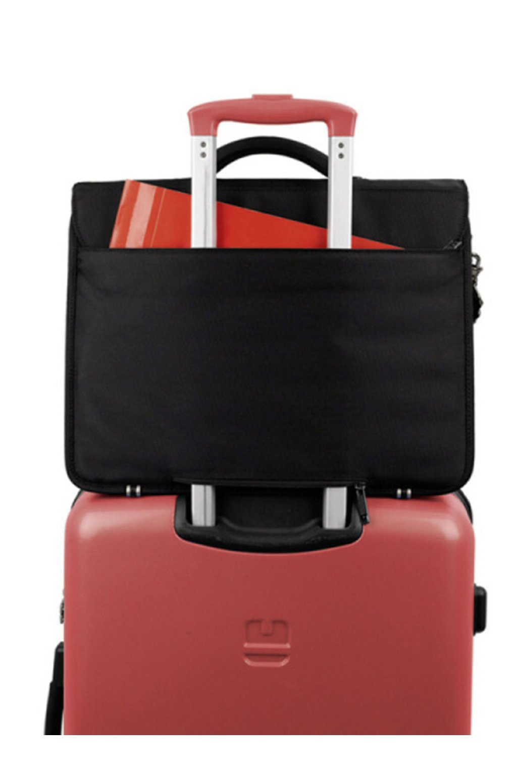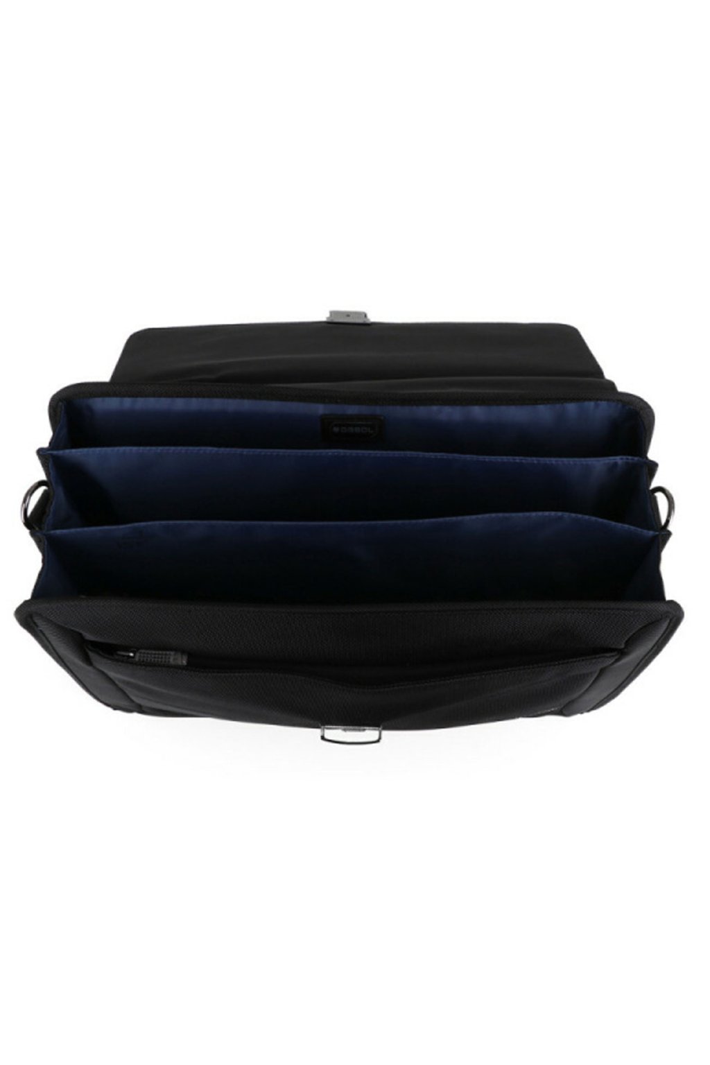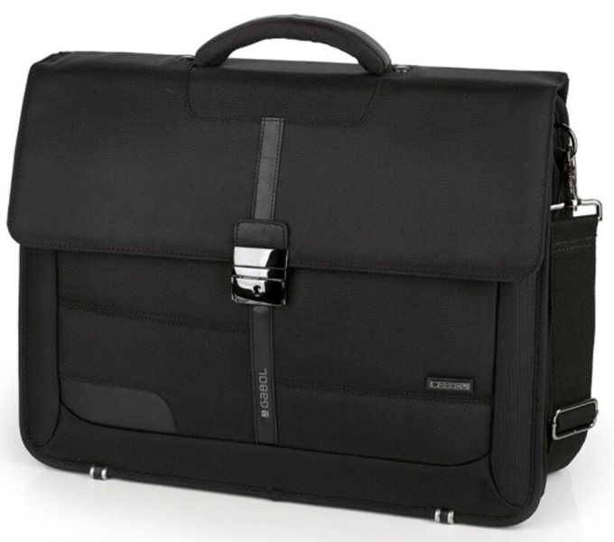 Luxusní pánská taška aktovkového typu z kvalitního textilního materiálu - polyester. Pánská taška přes rameno španělské značky GABOL je v elegantní černé barvě. Tato pánská taška má ,,poutko,, k přenosu tašky v ruce a také dostatečně dlouhý popruh umožňující nosit tašku i přes rameno. Taška je většího formátu, uvnitř rozdělena kapsou na zip na 4 samostatné komory, do kterých vám pohodlně vejdou Vaše dokumenty A4, notebook 15.6" , ale také doklady, peněženka, mobil, vizitky, propisky a jiné věci denní potřeby. Velkou výhodou pánské textilní tašky je její zadní kapsička na zip. V zadní části tašky je úchyt na trolej cestovního zavazadla.