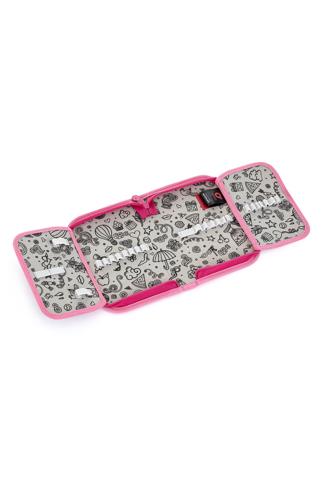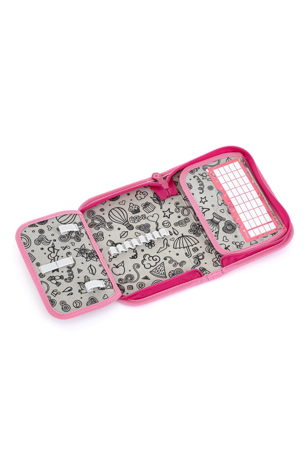 Jednopatrové školní pouzdro je vybaveno osmnácti klasickými gumovými úchyty na pastelky a fixy, čtyřmi širšími úchyty na pravítka, kružítko či nůžky a dvěma většími úchyty na gumu a ořezávátko. Pod klopnou z průhledné folie najdete rozvrh hodin, ale třeba poslouží i na taháky :-) Vnitřní podšívka školních penálů je vyrobena z šedé látky a obrázky na ní vytištěné je možné si pastelkami vybarvovat!