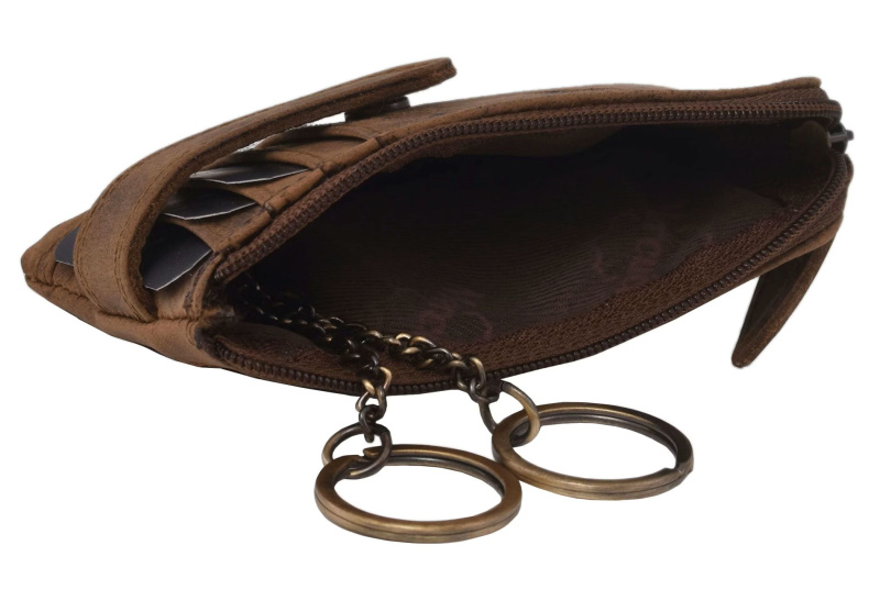 Kožená klíčenka je vyrobená z hovězí kůže je charakteristická především úpravou povrchové kůže a dnes tolik moderní barvou a logem firmy na čelní straně klíčenky. A stejně jako všechny kožené klíčenky této značky se i tato vyznačuje praktičností, neboť do ní pohodlně umístíte klíče. Uvnitř této klíčenky se nachází samostatná kapsa na klíče uzavíratelná na zip, jedna kapsa na zadní části klíčenky.