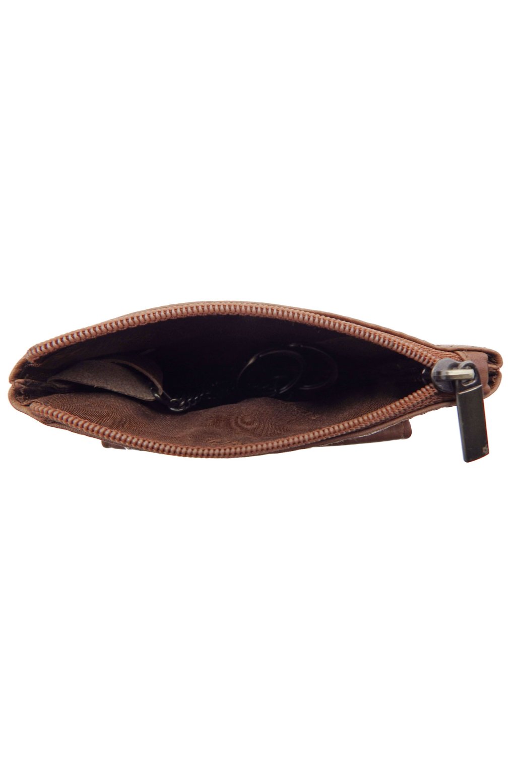 Luxusní kožená klíčenka z jemné kůže. Klíčenka pojme i větší svazek klíčů. V přední části klíčenky jistě oceníte dvě kapsy 1 zipovou a 1 na druk. Uvnitř klíčenky se nachází praktické kožené poutko, 2 kroužky na klíče a kvalitní látková podšívka.