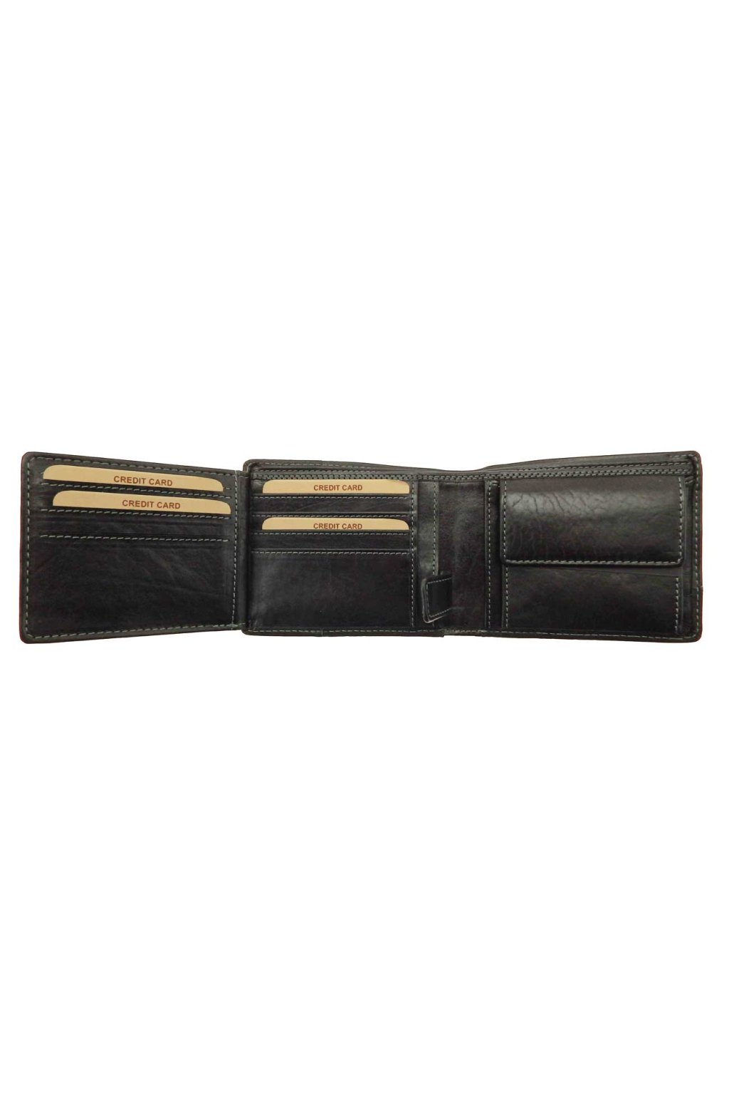 Pánská kožená peněženka vyrobená z hovězí kůže v černé barvě je charakteristická svým zpracováním kůže. A stejně jako všechny pánské kožené peněženky této značky se i tato vyznačuje praktičností, neboť do ní pohodlně umístíte bankovky, doklady, klubové i kreditní karty. Uvnitř této peněženky se nachází samostatná kapsa na drobné mince uzavíratelná na druk, dvě prostorné kapsy na bankovky a organizér na 14 ks kreditních a klubových karet, který lze sepnout zápinkou. Součástí této pánské kožené peněženky je papírová krabička s logem firmy.
