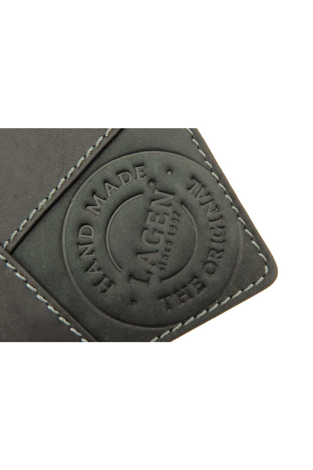 Pánská kožená peněženka elegantního vzhledu z kolekce LAGEN v černé barvě s logem firmy na čelní straně. Peněženka má dostatečný velký prostor na mince, dvě prostorné kapsy na bankovky, a organizér na 10 ks kreditních a klubových karet, které jdou k sobě připnout zápinkou.