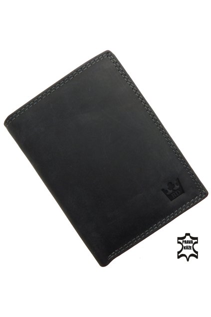 Pánská kožená peněženka z kolekce BD v trendy černá barvě s logem firmy na čelní straně, je vyrobena z kůže, která si zachovává svůj přírodní vzhled, čímž se těší velké oblíbenosti u zákazníků. Peněženka má dostatečně velký prostor na mince, dvě prostorné kapsy na bankovky a organizér na 10 ks kreditních a klubových karet. Vnitřní organizér na doklady, lze k sobě připnout zápinkou.