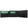 Pánská kožená peněženka vyrobená z kůže je charakteristická především úpravou povrchové kůže, která ji spolu s černou barvou dodává dnes tolik moderní přirozený vzhled. Logo firmy a prošití na čelní straně peněženky jen umocňují její trendy . A stejně jako všechny pánské kožené peněženky této značky se i tato vyznačuje praktičností, neboť do ní pohodlně umístíte bankovky, doklady, klubové i kreditní karty. Uvnitř této peněženky se nachází samostatná kapsa na drobné mince uzavíratelná na druk, dvě prostorné kapsy na bankovky a organizér na 10 ks kreditních a klubových karet. Vnitřní organizér na doklady, lze k sobě připnout zápinkou.