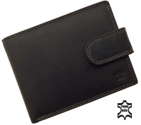 Pánská kožená peněženka vyrobená z kůže je charakteristická především úpravou povrchové kůže, která ji spolu s černou barvou dodává dnes tolik moderní přirozený vzhled. Logo firmy a prošití na čelní straně peněženky jen umocňují její trendy. A stejně jako všechny pánské kožené peněženky této značky se i tato vyznačuje praktičností, neboť do ní pohodlně umístíte bankovky, doklady, klubové i kreditní karty. Uvnitř této peněženky se nachází samostatná kapsa na drobné mince uzavíratelná na druk, dvě prostorné kapsy na bankovky a organizér na 11 ks kreditních a klubových karet. Celou pánskou koženou peněženku lze připnout zápinkou.