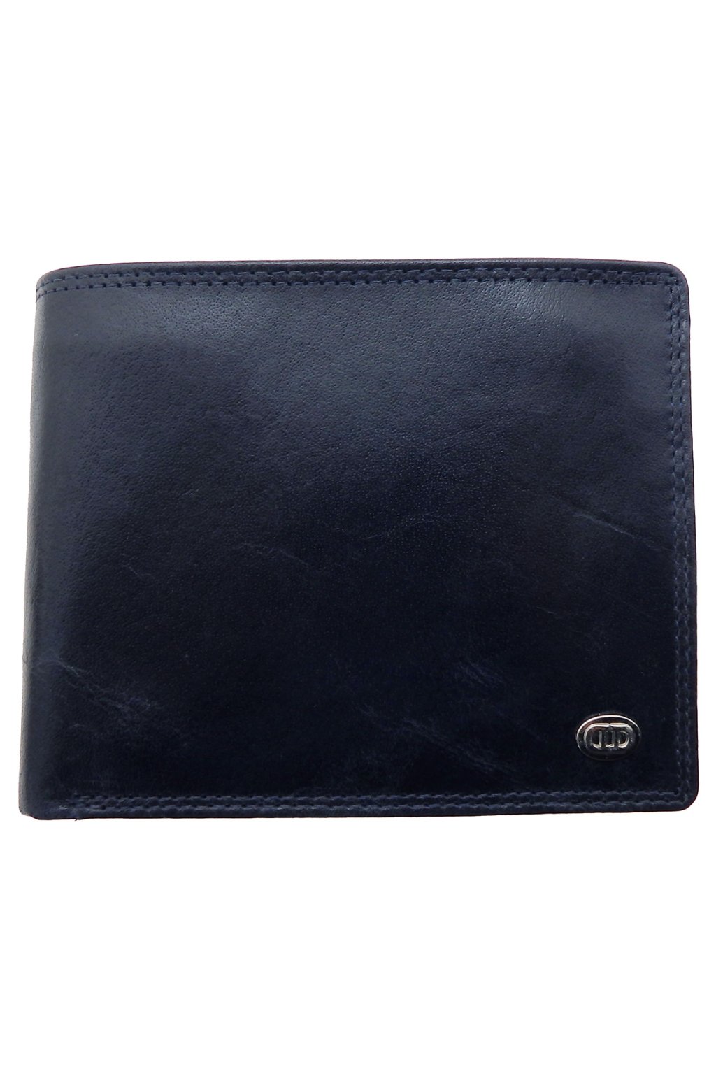 Pánská kožená peněženka z kolekce firmy DD v tmavě modré barvě s trendy prošitím a logem firmy na čelní straně. Peněženka má dostatečný velký prostor na mince, dvě prostorné kapsy na bankovky a jednu na zip, organizér na 10ks kreditních a klubových karet.