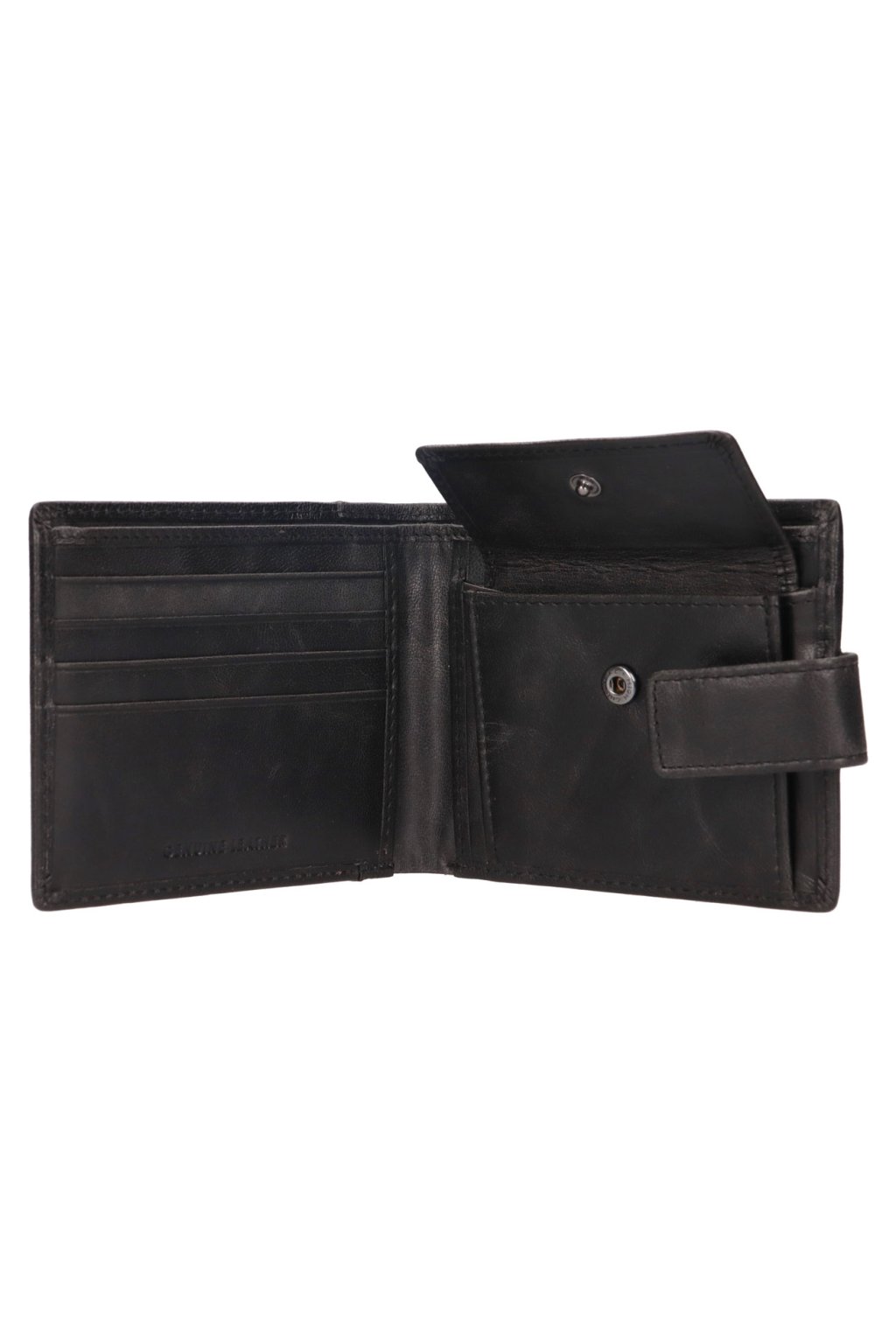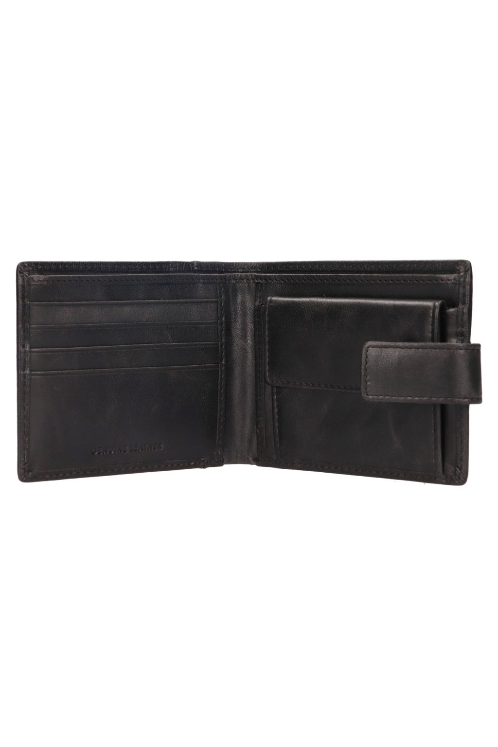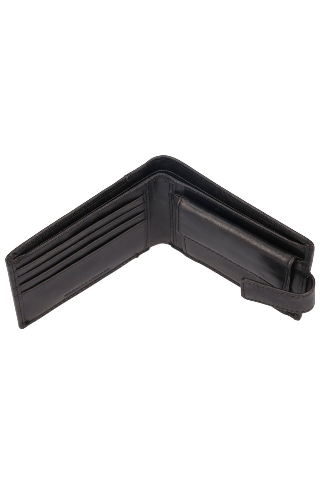 Pánská kožená peněženka vyrobená z hovězí kůže je charakteristická především hladkou úpravou povrchové kůže a dnes tolik moderní černé barvou a logem firmy na čelní straně peněženky. A stejně jako všechny pánské kožené peněženky této značky se i tato vyznačuje praktičností, neboť do ní pohodlně umístíte bankovky, doklady, klubové i kreditní karty. Uvnitř této peněženky se nachází samostatná kapsa na drobné mince uzavíratelná na druk, dvě prostorné kapsy na bankovky a organizér na 6 ks kreditních a klubových karet. Tato pánská peněženka se celá uzavírá zápinkou na druk, což umožňuje velice lehkou manipulaci s peněženkou při placení a zápinkou navíc drží celou pánskou peněženku u sebe.