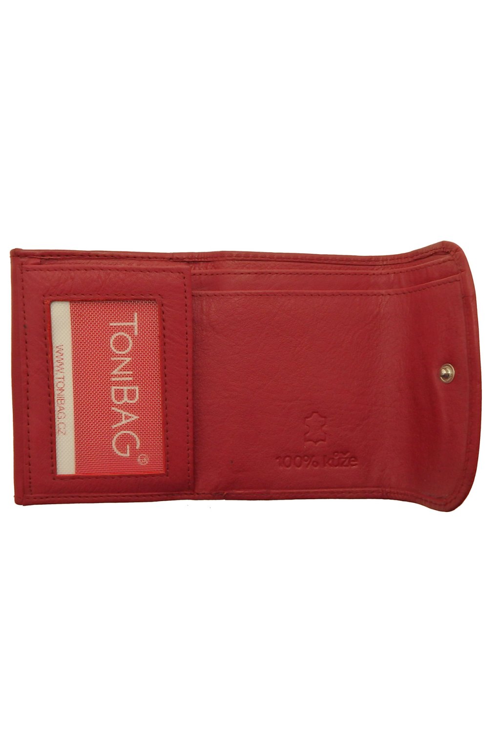 - dámská kožená peněženka v trendy barevné kombinaci červené barvy s hladkou úpravou povrchové kůže, což umocňuje její elegantní vzhled