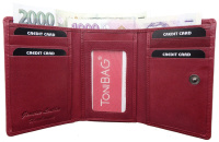 - dámská kožená peněženka v trendy bordó barvě s elegantní úpravou povrchové kůže a prošitím po obvodu na přední části, což umocňuje její vzhled