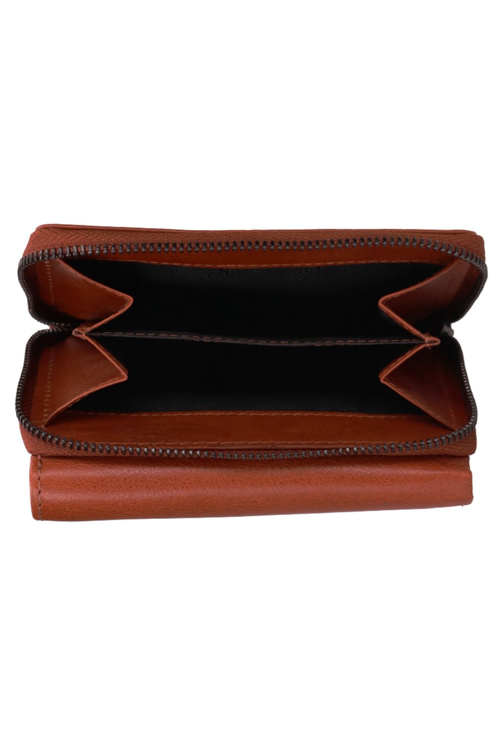 - dámská kožená peněženka v trendy hnědé barvě s elegantní úpravou povrchové kůže a prošitím po obvodu na přední části, což umocňuje její vzhled