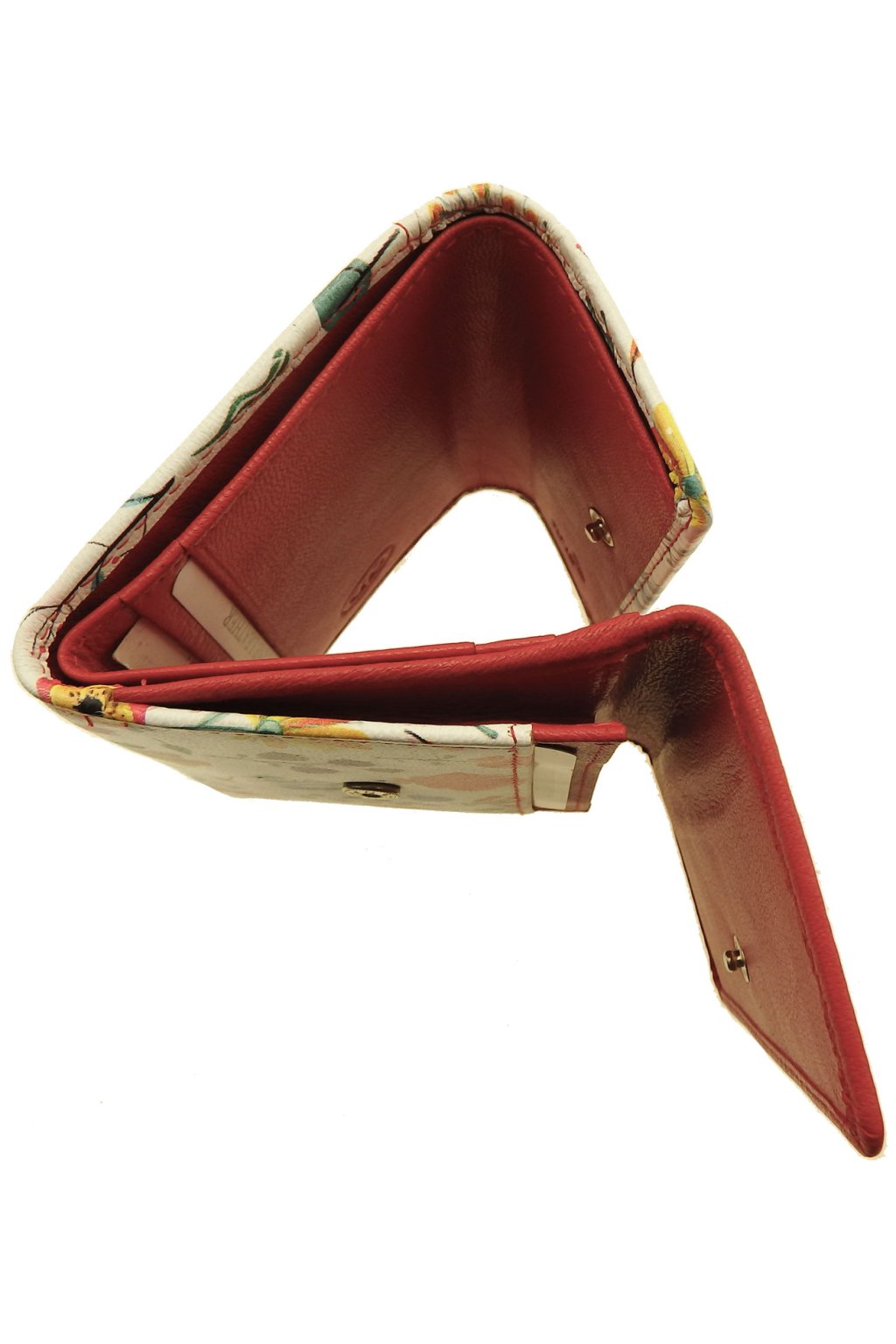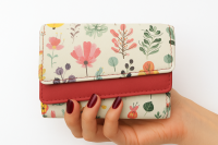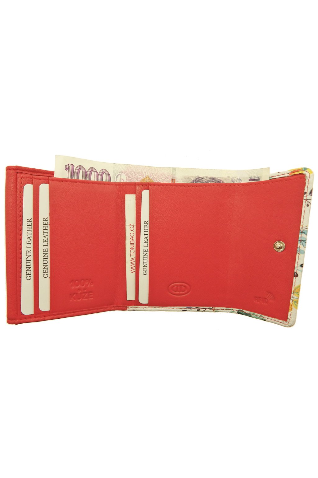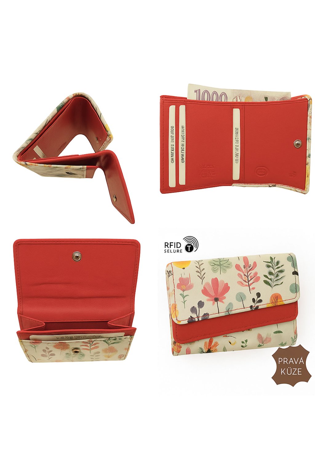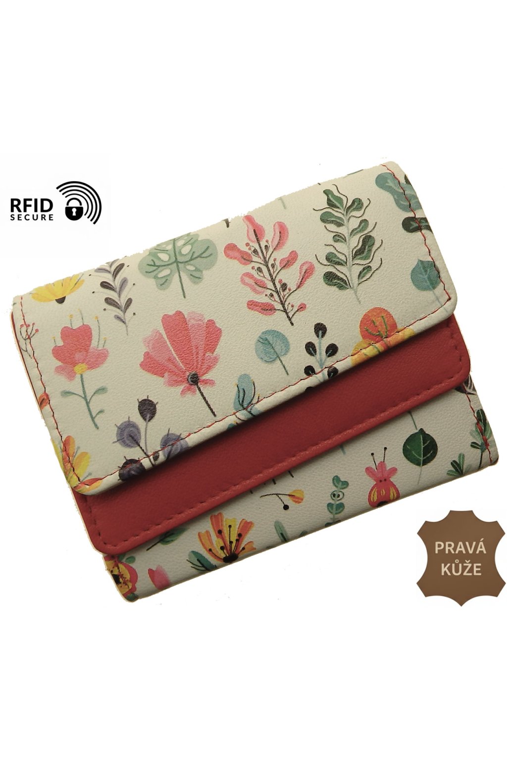 DÁMSKÁ KOŽENÁ PENĚŽENKA MALÁ DD - BÍLA-ČERVENÁ KVĚT