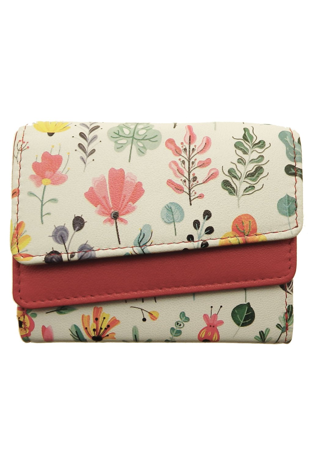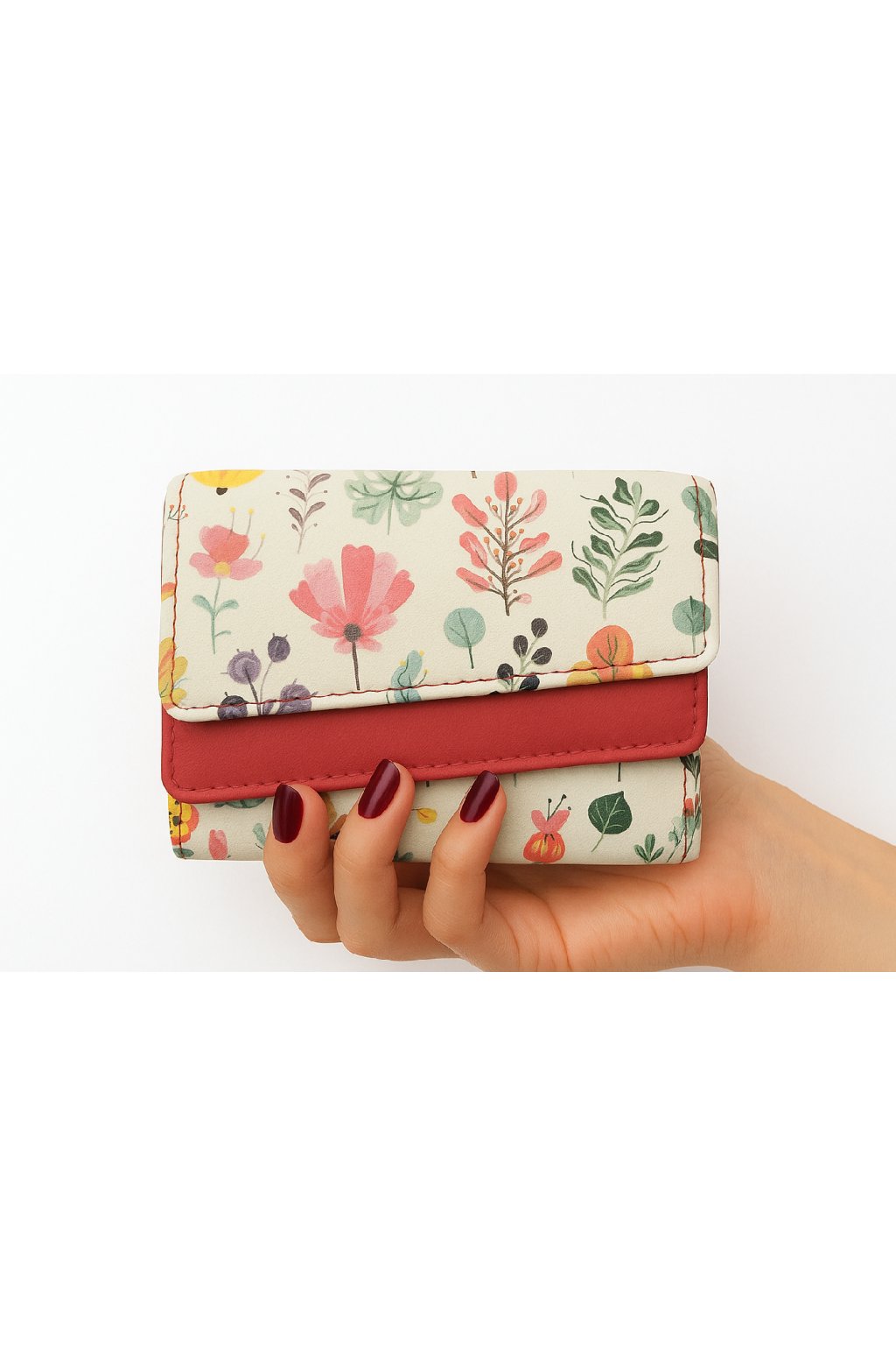 DÁMSKÁ KOŽENÁ PENĚŽENKA MALÁ DD - BÍLA-ČERVENÁ KVĚT: | DKP18-X-228-99 / Bíločervená |