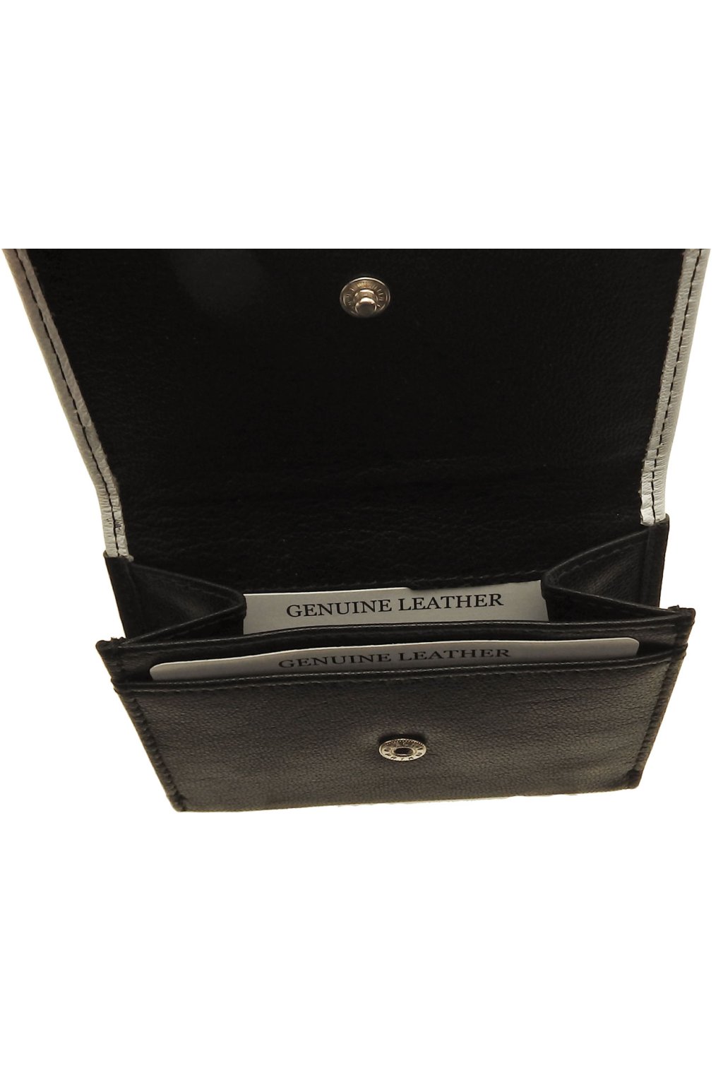 Dámská kožená peněženka z kolekce firmy DD v černobílé barvě má trendy tvar, menší rozměr, přesto velmi přehledné vnitřní uspořádání. Peněženka má na předním díle prostor na drobné mince uzavíratelný zápinkou a pod ním druhý přehledný prostor na bankovky a kapsičky na 4 kreditní karty, také tento prostor je uzavíratelný zápinkou.