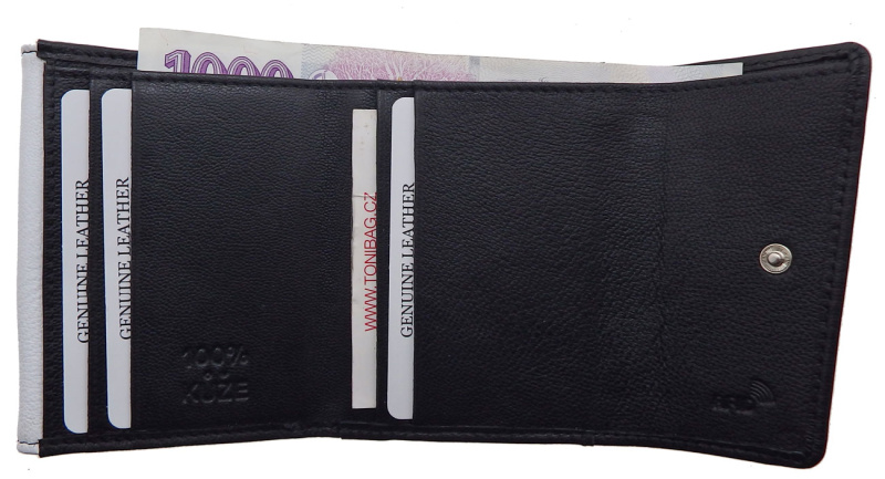 DÁMSKÁ KOŽENÁ PENĚŽENKA MALÁ DD ČERNÁ - BÍLA