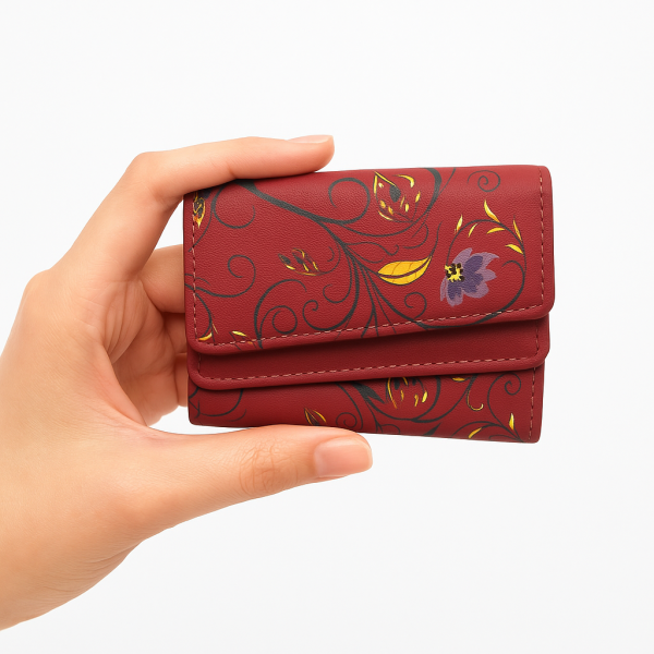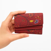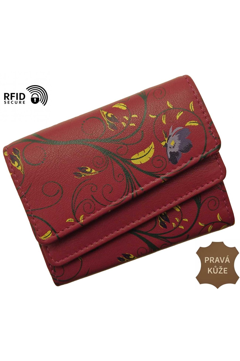 DÁMSKÁ KOŽENÁ PENĚŽENKA MALÁ DD - BÍLA-ČERVENÁ KVĚT: | DKP18-X-228-22 / Fialová |