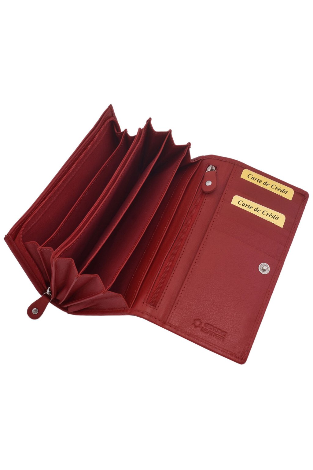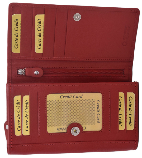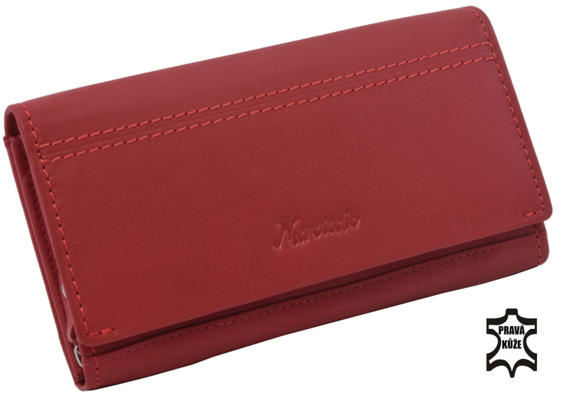 - z důvodu zabezpečení se tato červená dámská kožená peněženka celá na klopě přední části uzavírá drukem