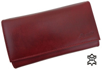 - z důvodu zabezpečení se tato červená dámská kožená peněženka celá na klopě přední části uzavírá drukem
