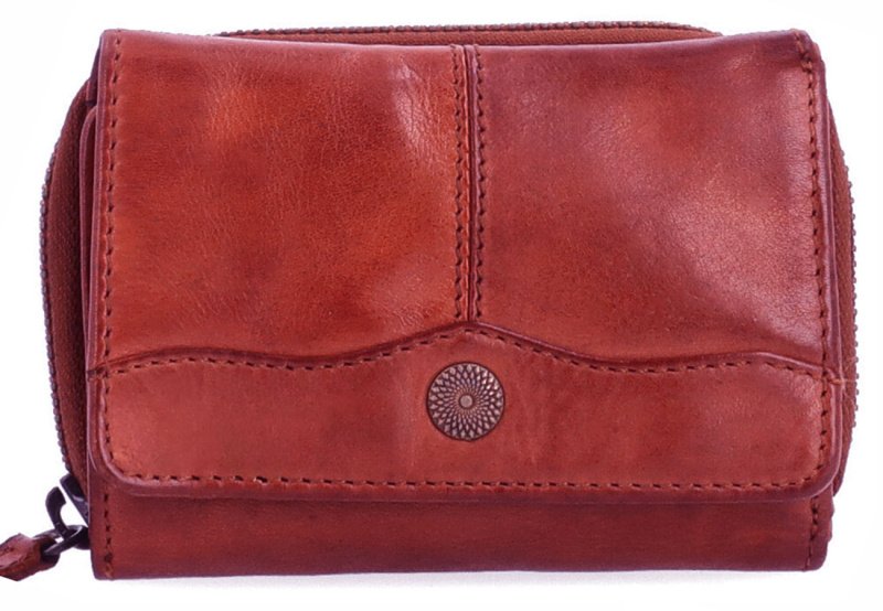 Dámská kožená peněženka z kolekce firmy NOELIA BOLGER v elegantní červené barvě s trendy úpravou povrchové kůže. Peněženka má prostor na drobné mince uzavíratelný na zip, 1 komoru na bankovky a organizér na 6 ks platebních a klubových karet. Dámská červená kožená peněženka je chráněna klopou na druk.