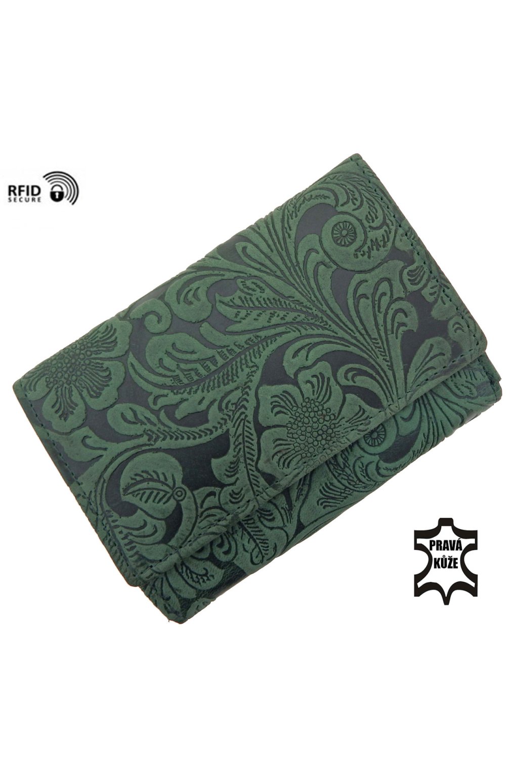 DÁMSKÁ KOŽENÁ PENĚŽENKA S RAŽBOU ZELENÁ