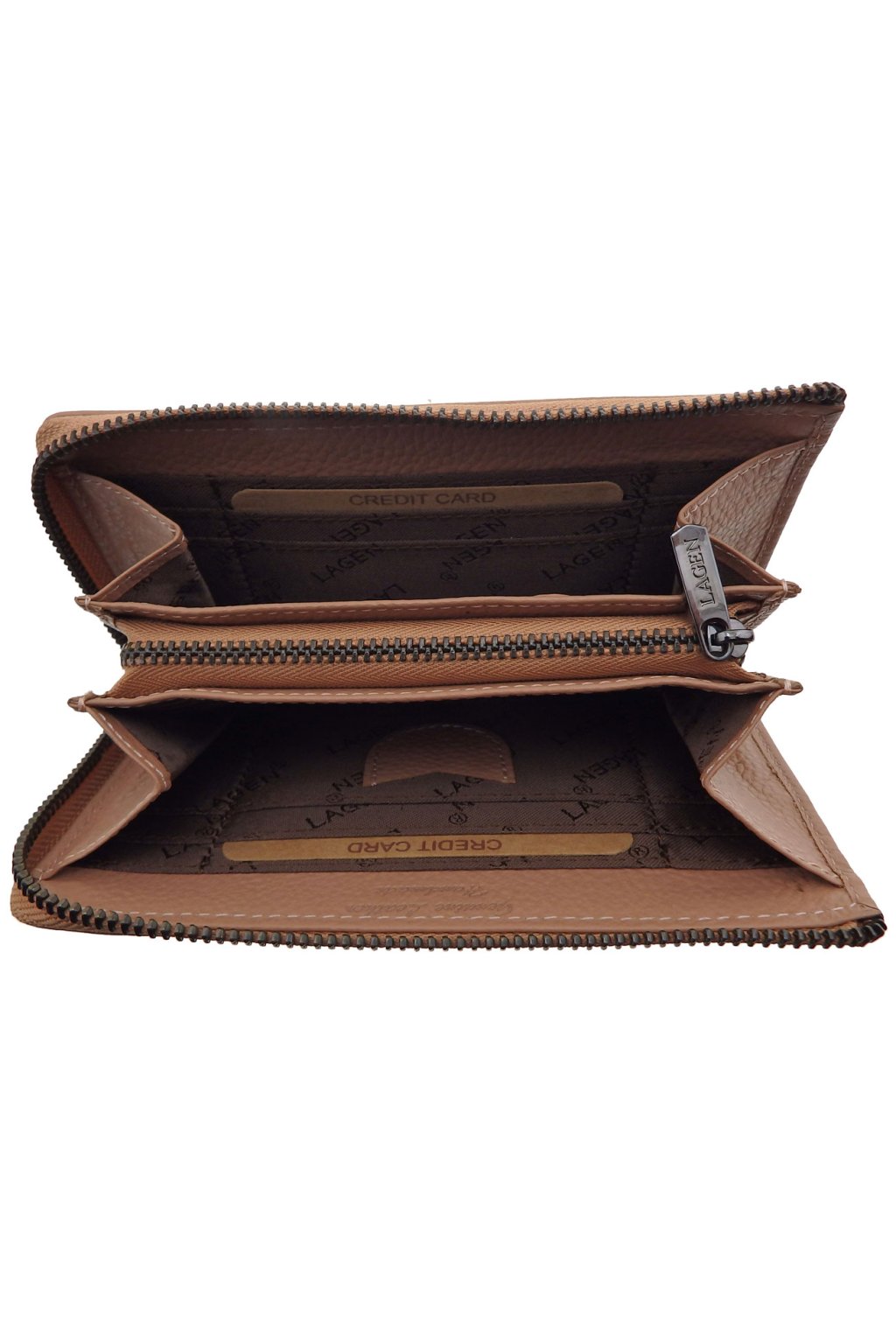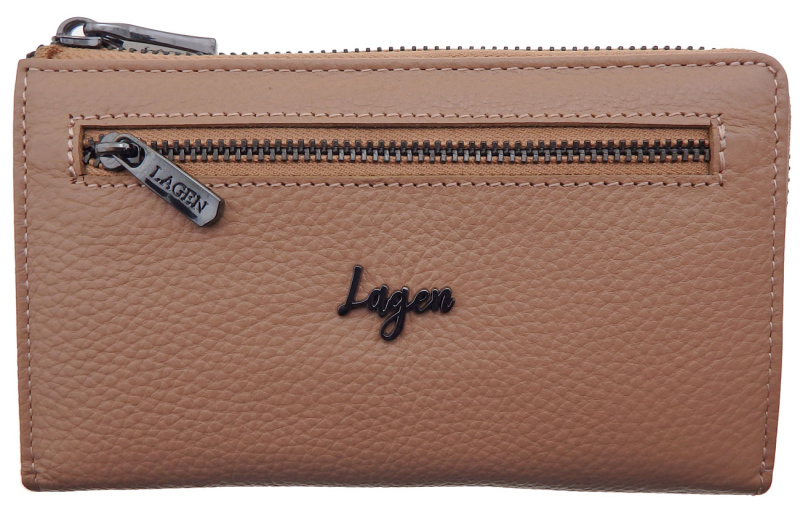 Dámská kožená peněženka LAGEN v trendy béžové barvě s luxusní úpravou kůže. Peněženka má prostor na drobné mince uzavíratelný zipem. Vnitřní část dámské kožené peněženky tvoří 2 komory na bankovky, 2 kapsičky na doklady a organizér na 10ks platebních a klubových karet. Tato dámská kožené peněženka je chráněna zápinkou na zip.
