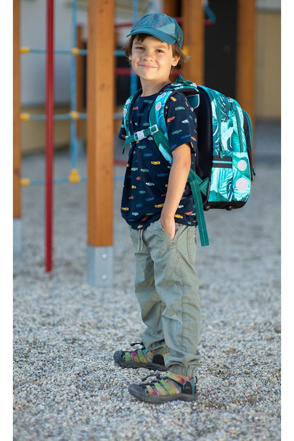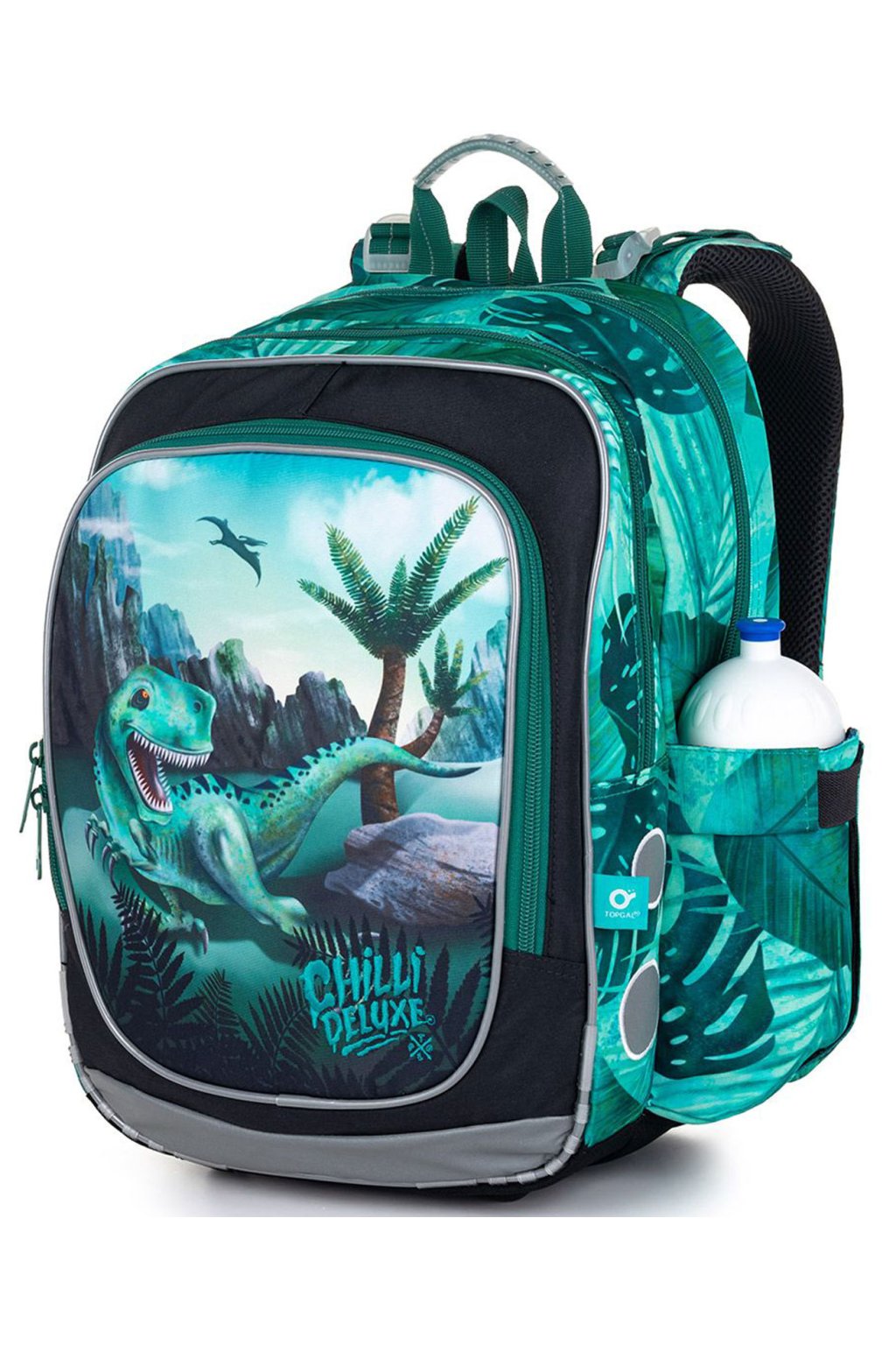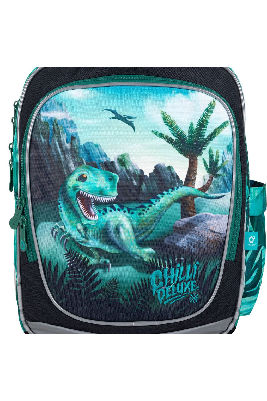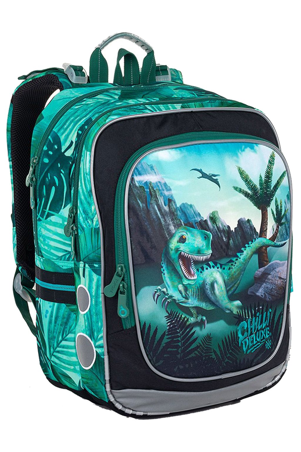 - dvoukomorový střih školního batohu Topgal pro kluky na 1 stupeň ZŠ se zcela novým motivem dinosaura na předním díle