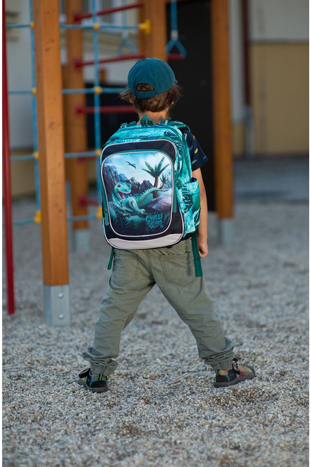 ŠKOLNÍ BATOH ENDY 20045 B pro KLUKY od českého výrobce TOPGAL, má oblíbený dvoukomorový střih ve zcela nové barevné variantě s dinosaurem pro malé školáky od 1 - 4 třídy. A stejně jako celá kolekce školních batohů firmy Topgal má i tento batoh spoustu reflexních prvků tak, aby nerušily jeho design. Pevná ergonomicky tvarovaná záda pro správné držení těla školáka a polstrované ramenní popruhy, které výborně sedí na zádech každému školákovi. Popruhy školního batohu jsou navíc doplněny o hrudní pásek pro lepší stabilitu školního batohu na zádech. Tento školní dvoukomorový batoh má na přední části jednu větší kapsu, do které se pohodlně vejde penál nebo krabička na svačinu a je zde i karabinka na klíče. Do boční síťové kapsy na školním batohu lze umístit láhev na pití. Do zadní komory školního batohu, doporučuje výrobce firma Topgal, umístit ty nejtěžší učebnice, neboť školní batoh má poté mnohem lepší stabilitu na zádech školáka. Dno školního batohu je chráněno čtyřmi gumovými výstupy. Školní batoh je testovaný a má CERTIFIKÁT z Institutu pro testování a certifikaci ve Zlíně.