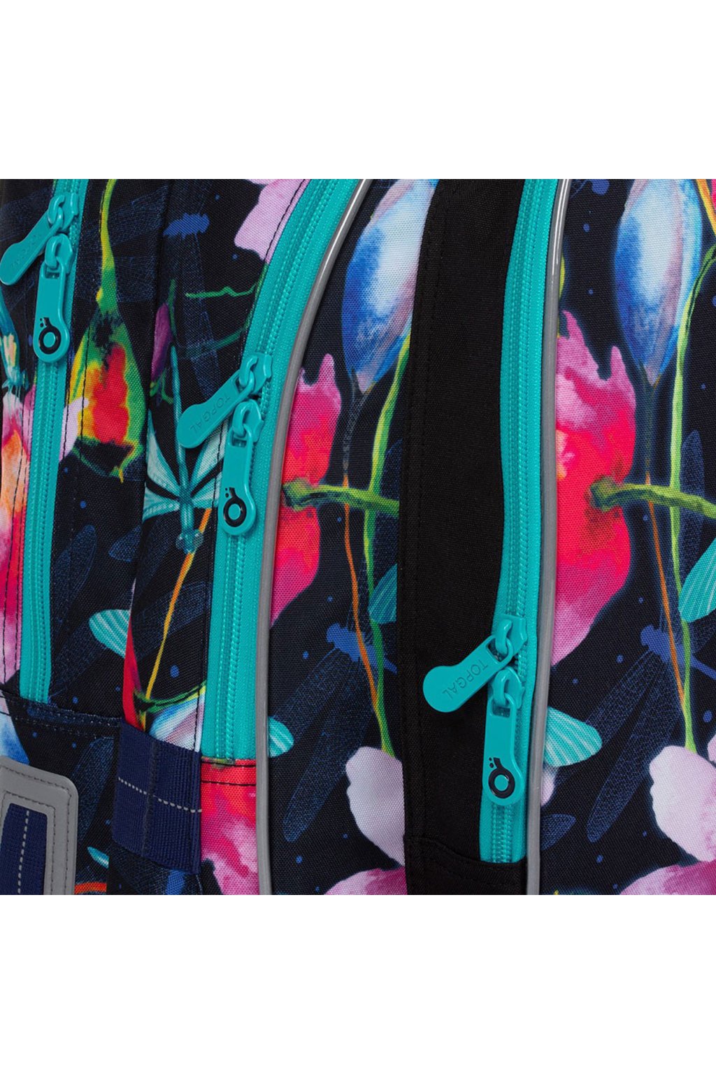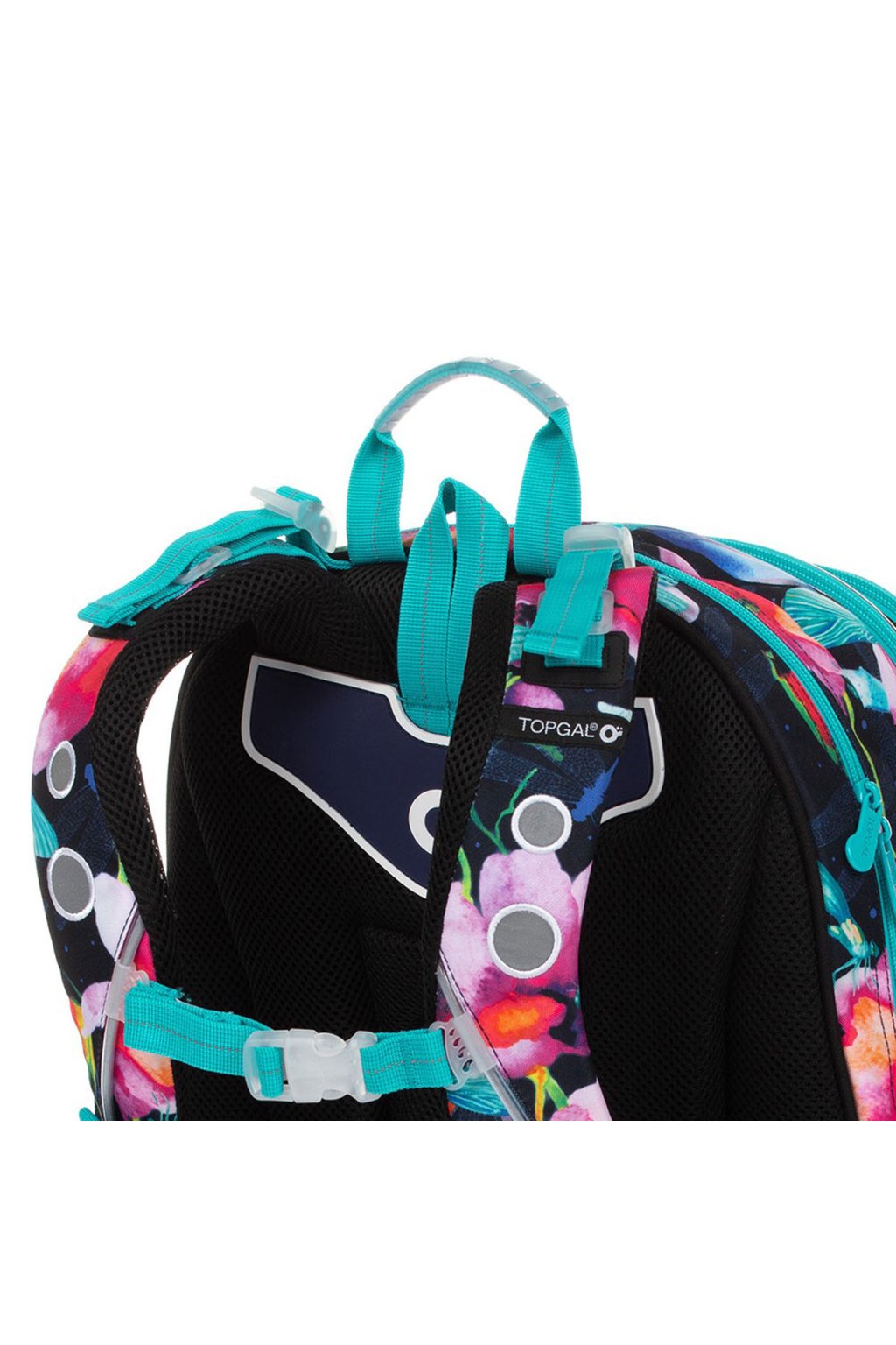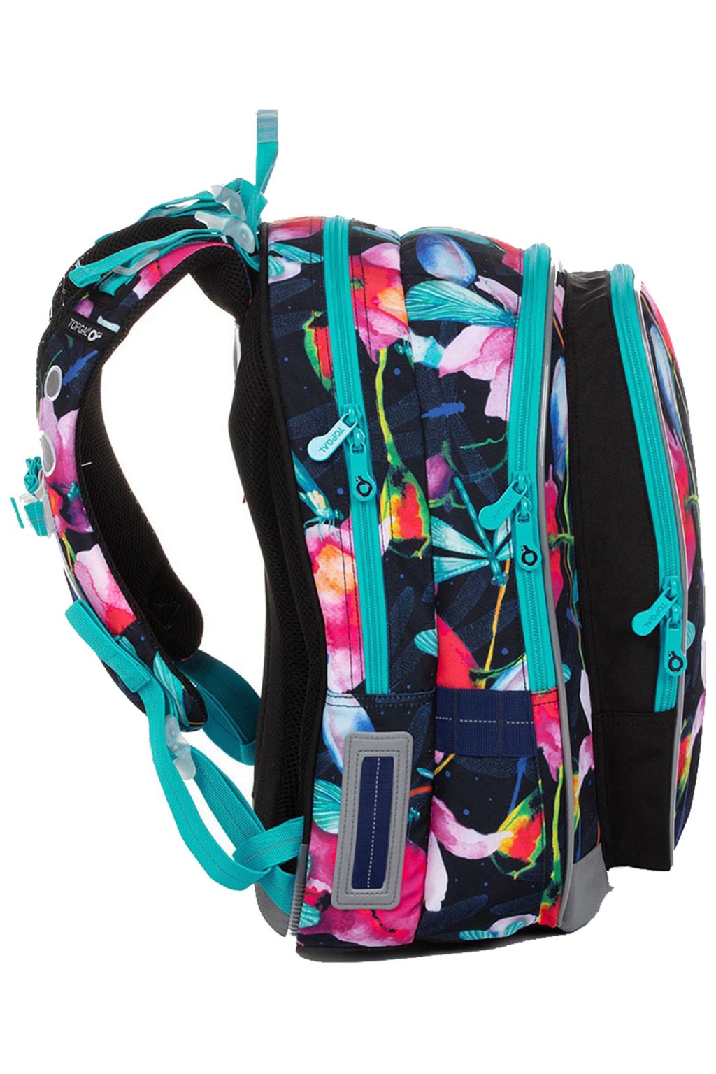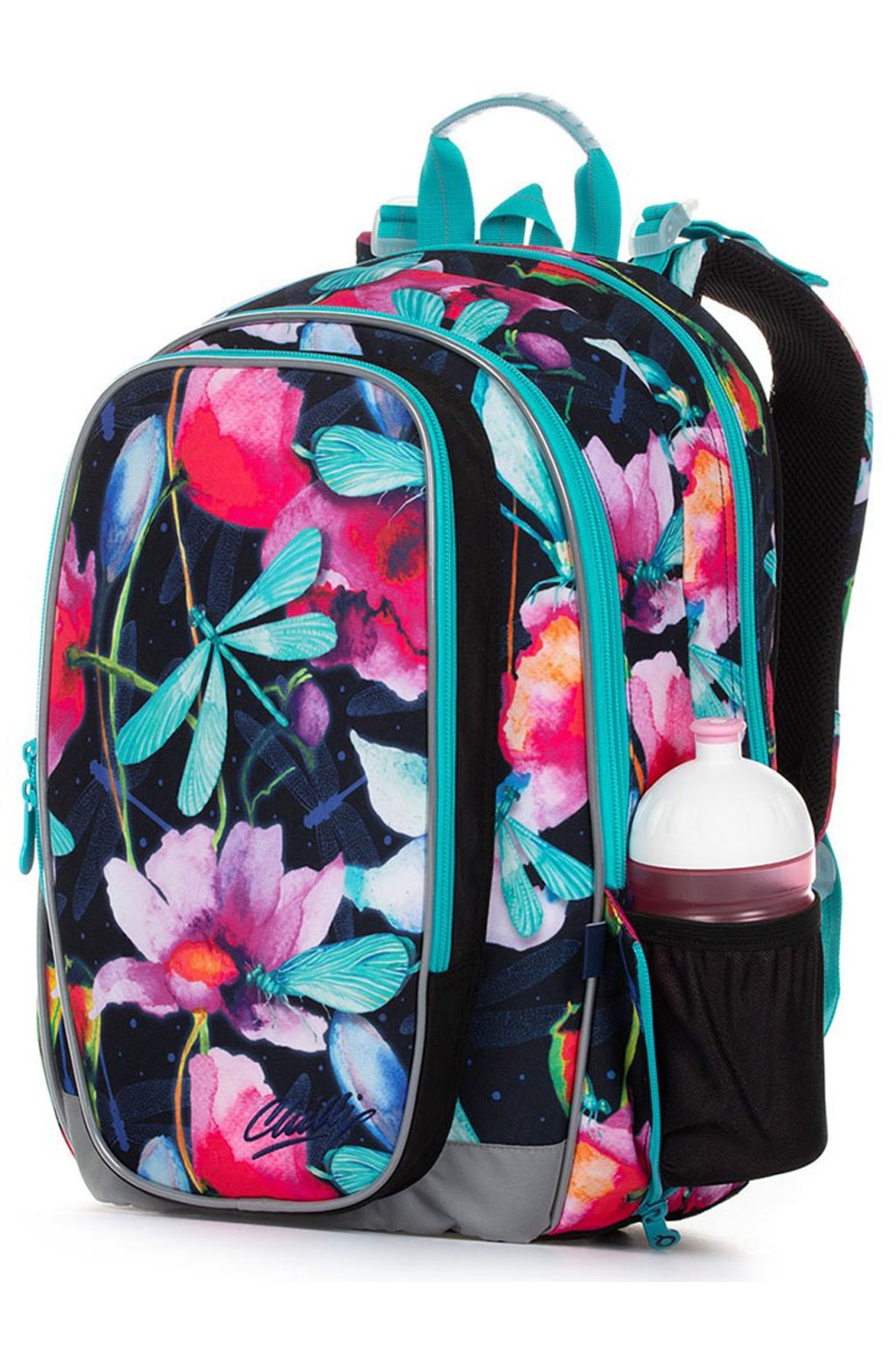 Certifikovaný školní batoh MIRA 20007 G pro HOLKY z kolekce TOPGAL s velkým množstvím reflexních prvků má nadčasový design, pevná anatomicky tvarovaná záda, polstrované popruhy, hrudní pásek, karabinku na klíče a boční síťovou kapsu. Tento školní batoh je laděn do jemného stylu akvarelem malovaných květů a křehkých vážek.