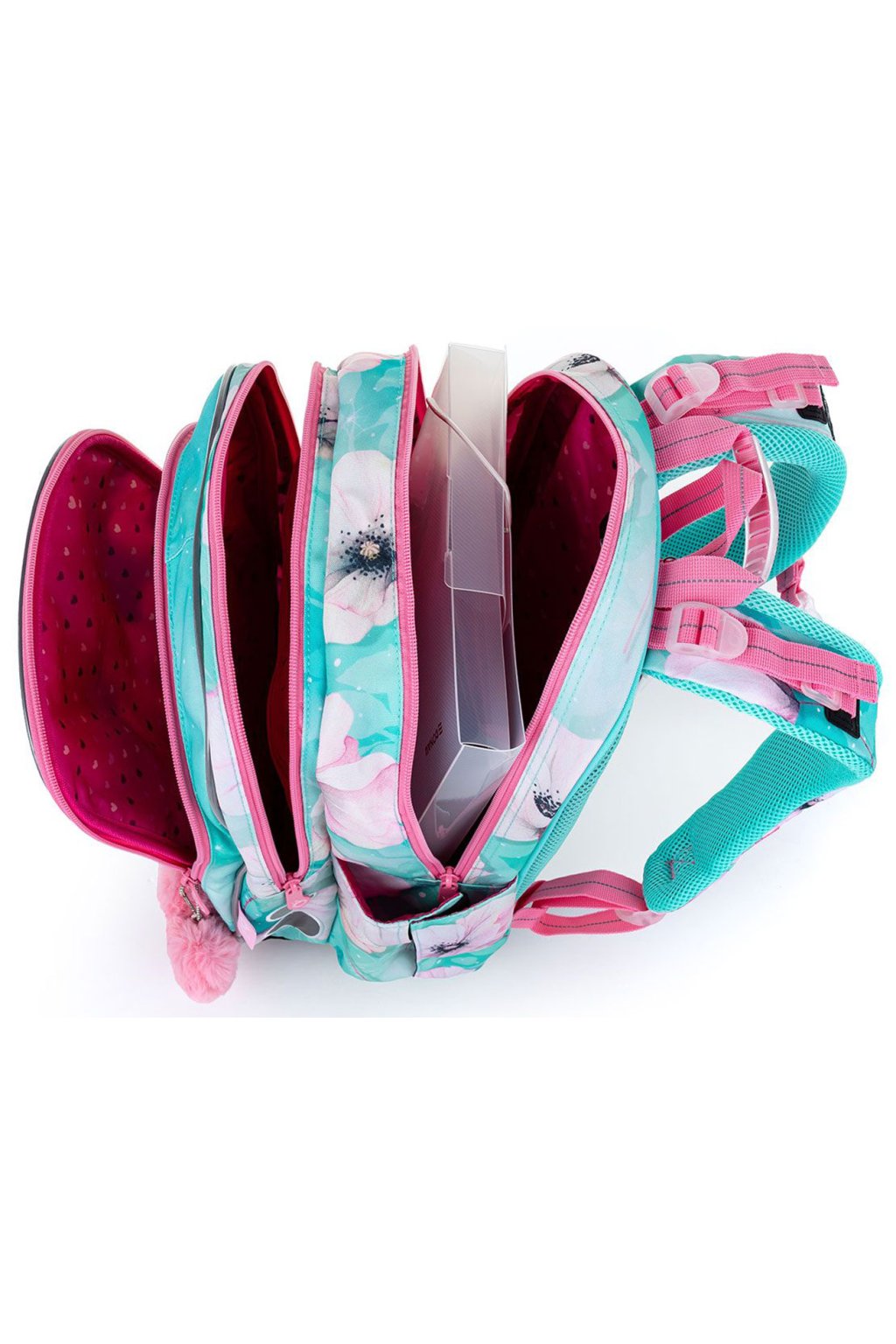 Batoh má dvě objemné hlavní komory. Zadní komora je širší - doporučujeme k zádům dávat nejtěžší učebnice nebo desky na sešity. Přední komora je o něco užší a je v ní umístěna ještě malá síťová kapsa na zip a jmenovka.