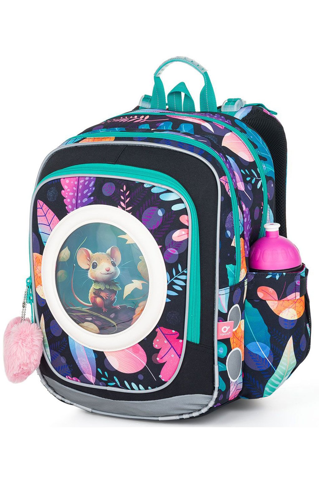 Certifikovaný školní batoh ENDY 24005 G pro HOLKY z nové kolekce značky TOPGAL s velkým množstvím reflexních prvků má nadčasový design s motivem na předním díle, pevná ergonomicky tvarovaná záda, polstrované popruhy, hrudní pásek, karabinku na klíče a boční síťovou kapsou na láhev. Součástí batohu jsou čtyři obrázky s myškou, srnkou, medvědem a veverkou.
