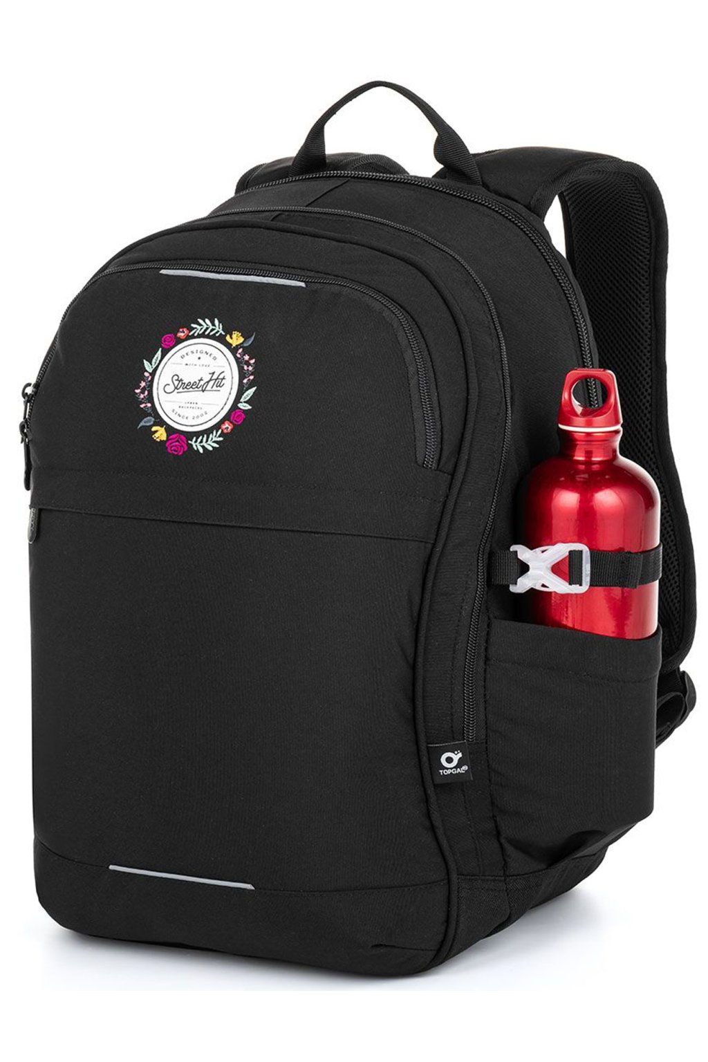Dvoukomorový studentský batoh od firmy TOPGAL, která je zárukou velmi perfektního zpracování, použitím velmi kvalitních materiálu a též trendy designu. Studentské batohy této firmy se těší stále větší oblíbenosti mezi školáky ZŠ i studenty SŠ. Studentský batoh má uvnitř celkem dvě samostatné zipem uzavíratelné kapsy z nich jedna obsahuje navíc polstrovanou kapsu na notebook 15". Pevná záda batohu i ramenní popruhy jsou anatomicky tvarované a s použitím hrudního pásku sedí výborně na zádech každého studenta. Každou boční část batohu tvoří nejen dostatečně velká síťovaná kapsička na 1l láhev, ale také kompresní popruh pro fixaci větší láhve popř. k nastavení hloubky batohu. Dno studentského batohu je vyrobeno z pevného oděru odolného materiálu.