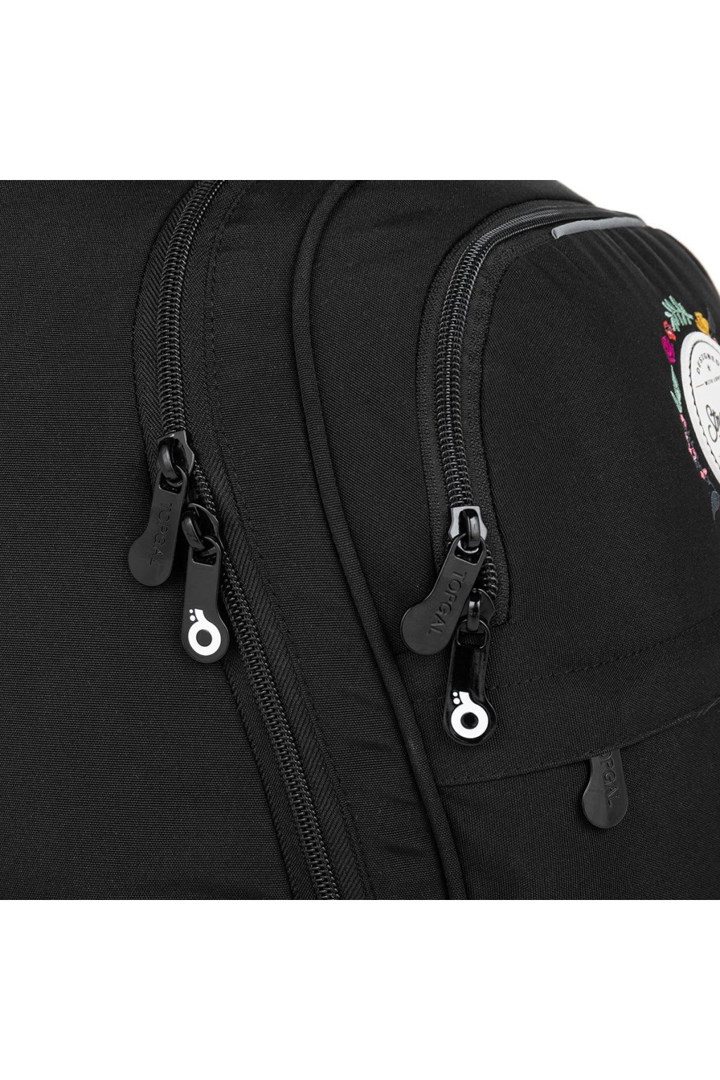 Certifikovaný dvoukomorový objemný batoh studentský RONY 23026 G pro HOLKY z kolekce TOPGAL má nadčasový design, pevná anatomicky tvarovaná záda, polstrované popruhy přes rameno, hrudní pásek, karabinku na klíče a boční síťovou kapsu na láhev. Dvoukomorový batoh v temně černé barvě, oživený vyšitými květy a stylovou nášivkou.