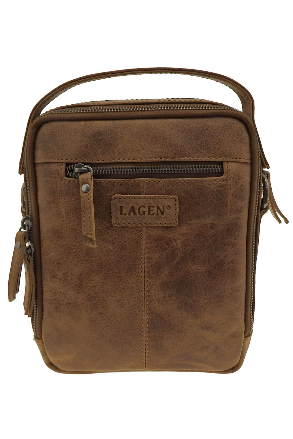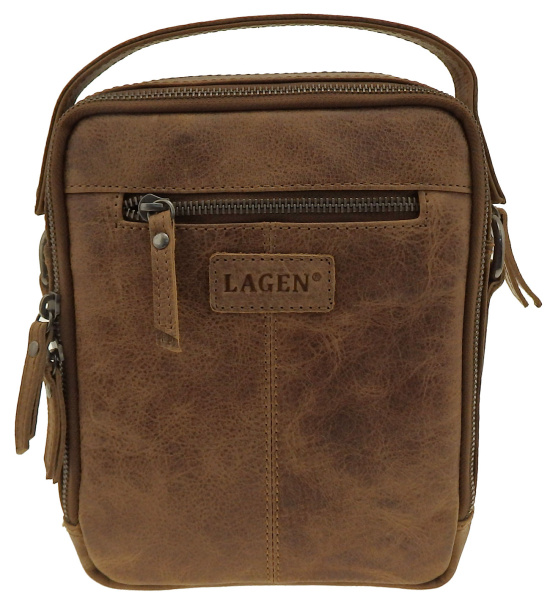 Elegantní pánská kožená taška přes rameno z kolekce značky LAGEN v hnědé barvě z kvalitní hovězí kůže s 2 kapsami uzavíratelnou zipem a nastavitelným popruhem k nošení přes rameno i křížem přes tělo. Vnitřní část pánské tašky přes rameno tvoří dvě dostatečně velké kapsičky např. na peněženku, klíče a jiné drobnosti denní potřeby, kapsičku na doklady uzavíratelnou na zip a kapsičku na mobil. Na přední i zadní části tašky přes rameno je kapsička také uzavíratelná zipem.