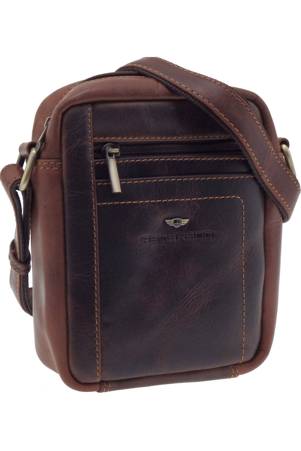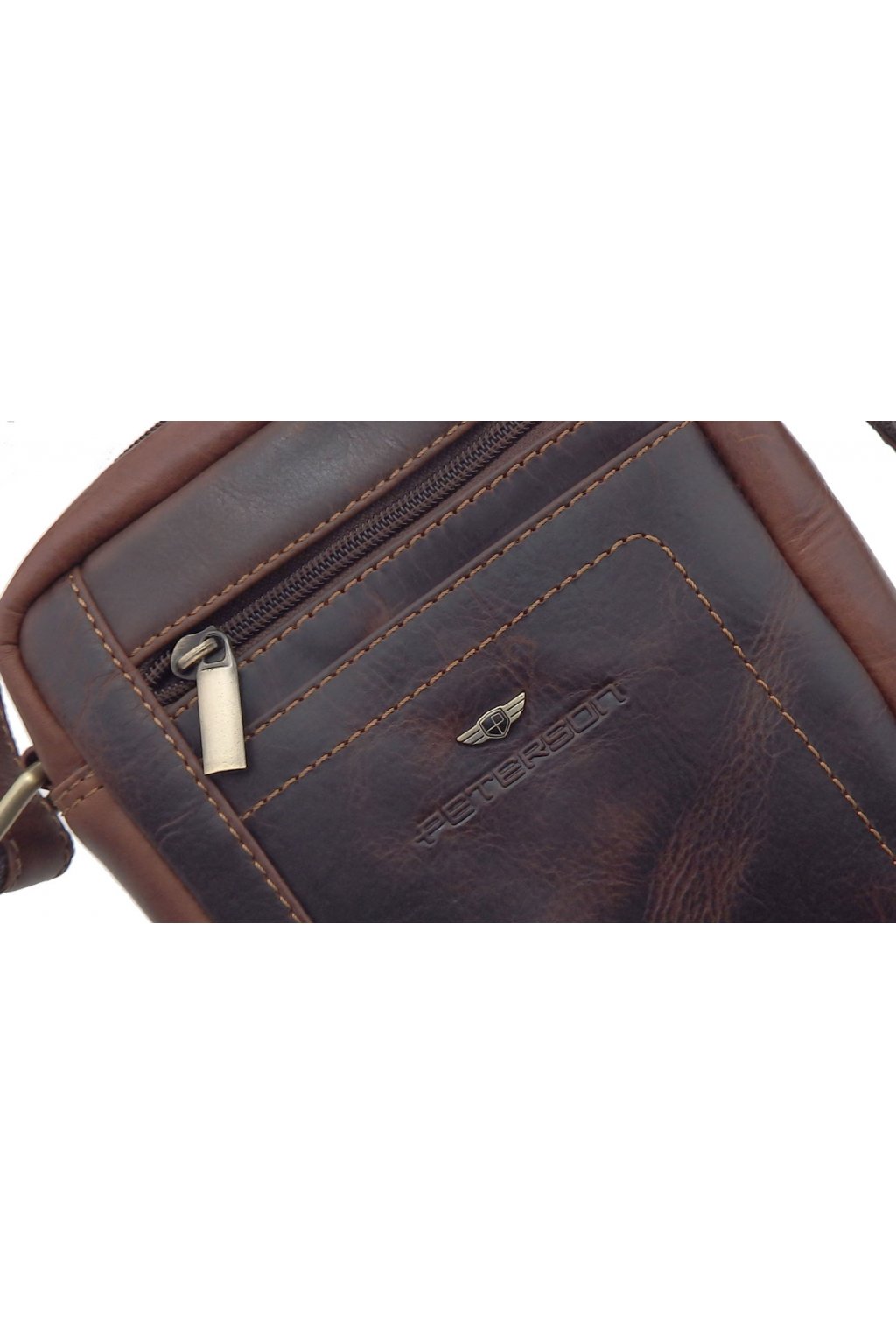 Elegantní pánská kožená taška přes rameno z kolekce značky PETERSON v hnědé barvě z kvalitní hovězí kůže s kapsou uzavíratelnou zipem a nastavitelným popruhem k nošení přes rameno i křížem přes tělo. Vnitřní část pánské tašky přes rameno tvoří dostatečně velká kapsa na peněženku, klíče a jiné drobnosti denní potřeby, kapsička na doklady uzavíratelná na zip a kapsička na mobil. Na přední i zadní části je kapsička také uzavíratelná zipem.